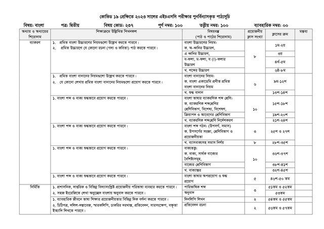 মহামারী করোনা ভাইরাসের জন্য ২০২৩ সালে অনুষ্ঠিত এইচএসসি পরীক্ষার পাঠদান কিছুটা ব্যাহত হয়েছে। যার কারণে জাতীয় শিক্ষাক্রম ও পাঠ্যপুস্তক বোর্ড (এনসিটিবি) এইচএসসি পরীক্ষার জন্য পুনর্বিন্যাসকৃত সিলেবাস প্রদান করেছেন , এনসিটিবির দেওয়া এইচএসসি বাংলা ২য় পত্র সিলেবাস এখানে তুলে ধরেছি।
