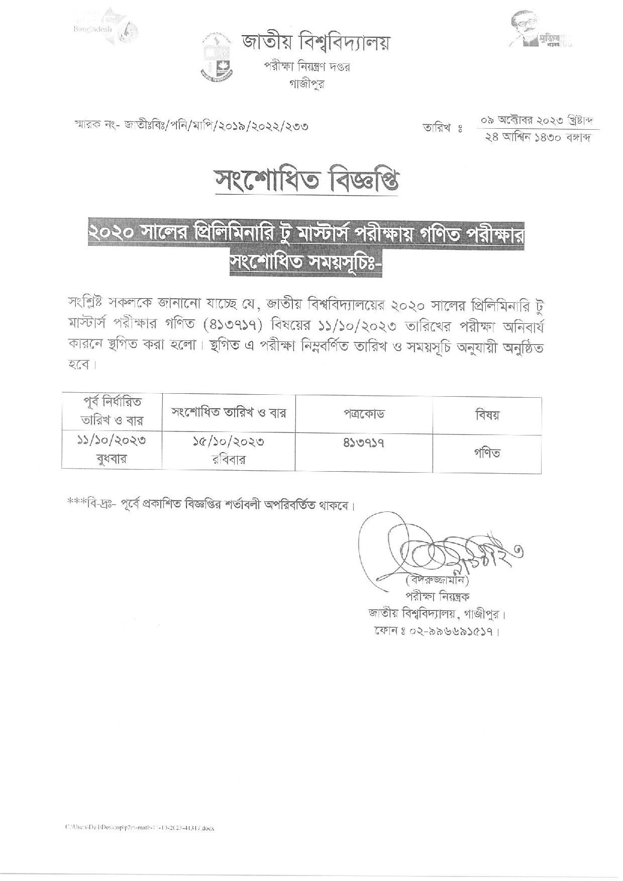| শিরোনাম | প্রিলিমিনারি টু মাস্টার্স পরীক্ষার রুটিন ২০২৩ |