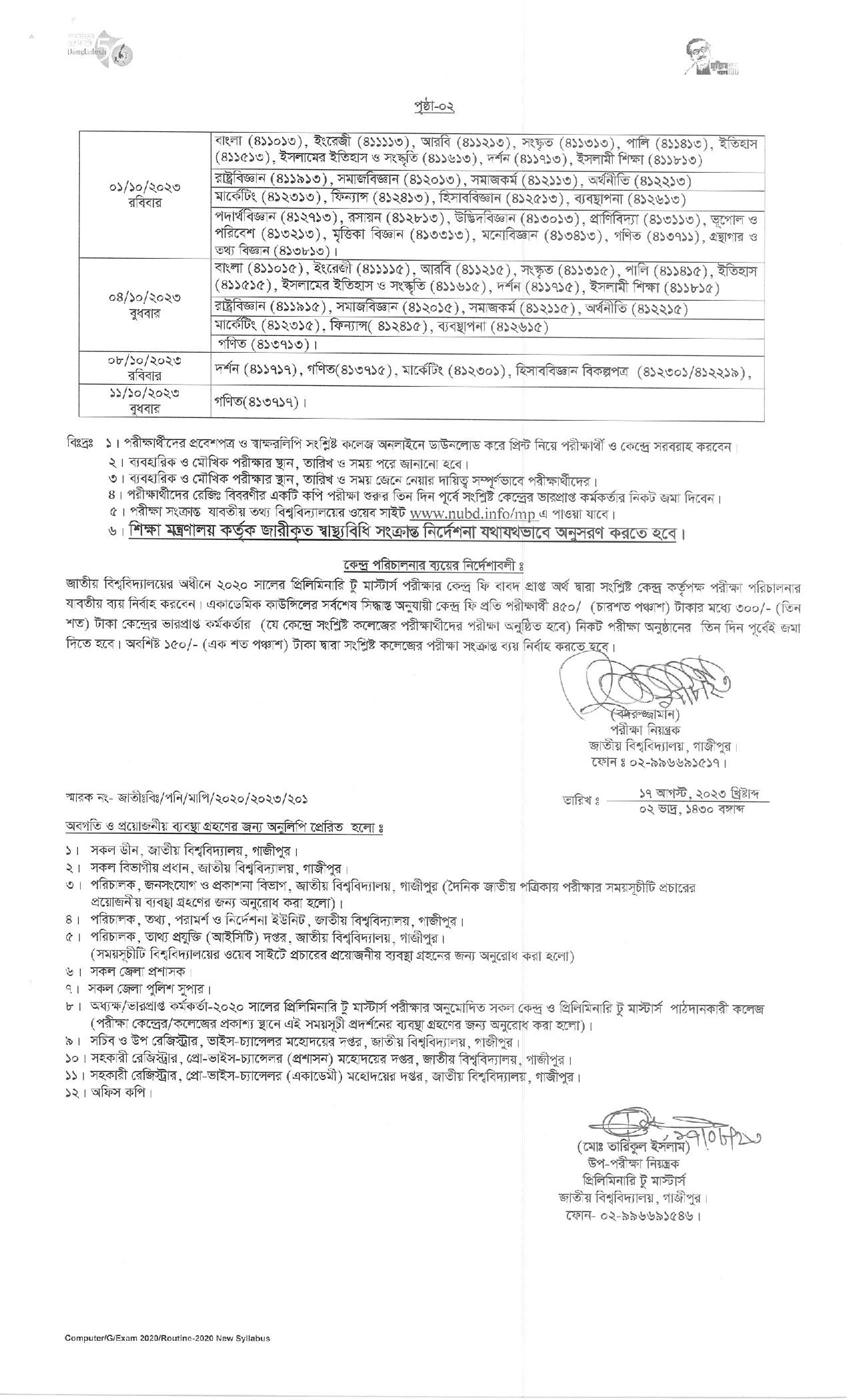 প্রিলিমিনারি টু মাস্টার্স পরীক্ষার রুটিন pdf ডাউনলোড