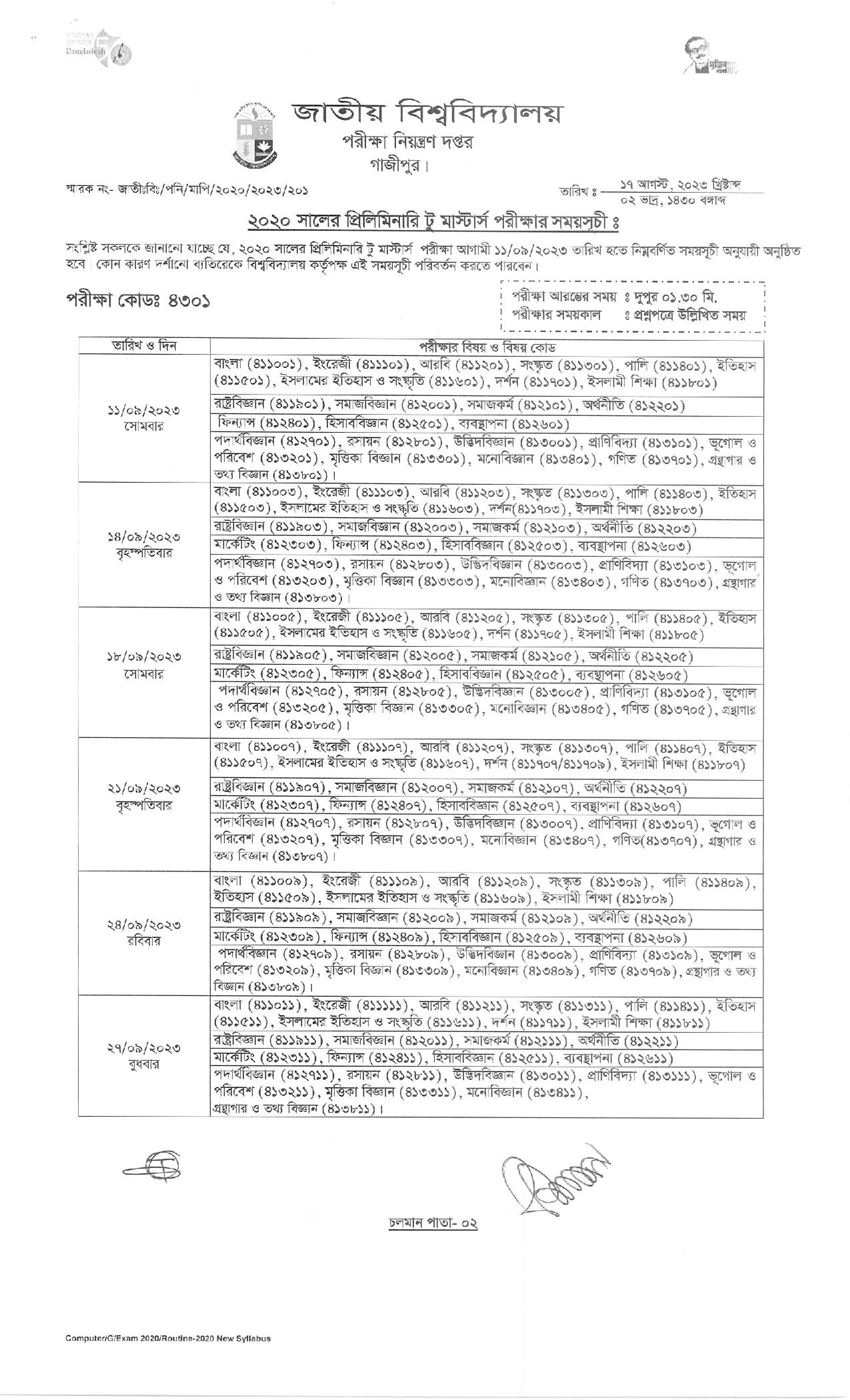 প্রিলিমিনারি টু মাস্টার্স পরীক্ষার সময়সূচী PDF ডাউনলোড