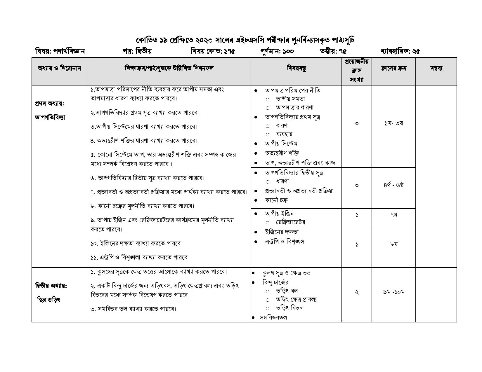 এইচএসসি পদার্থবিজ্ঞান ২য় পত্র শর্ট সিলেবাস ২০২৩ PDF ডাউনলোড