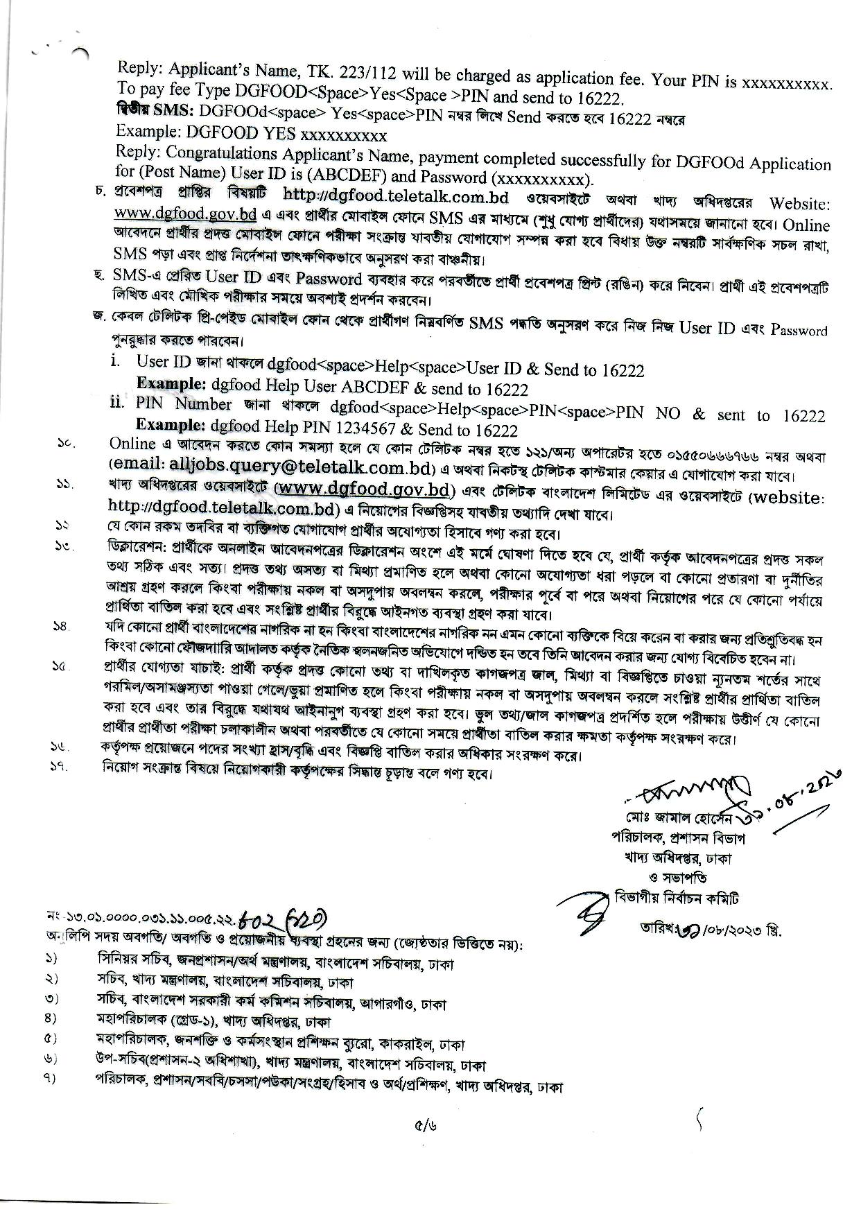 খাদ্য অধিদপ্তর নিয়োগ বিজ্ঞপ্তি ২০২৩ pdf
