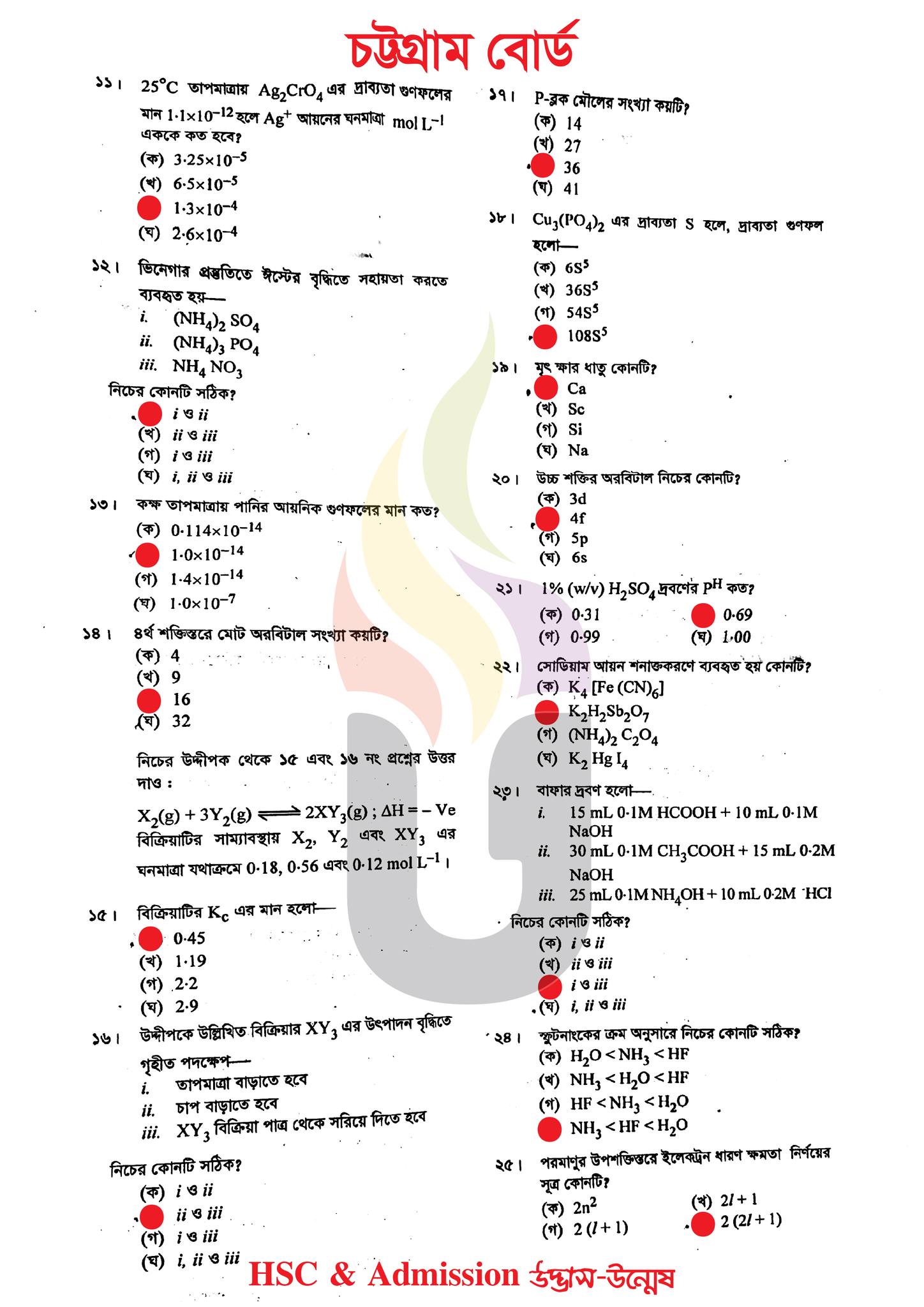 চট্টগ্রাম বোর্ড এইচএসসি রসায়ন ১ম পত্র প্রশ্ন সমাধান ২০২৩