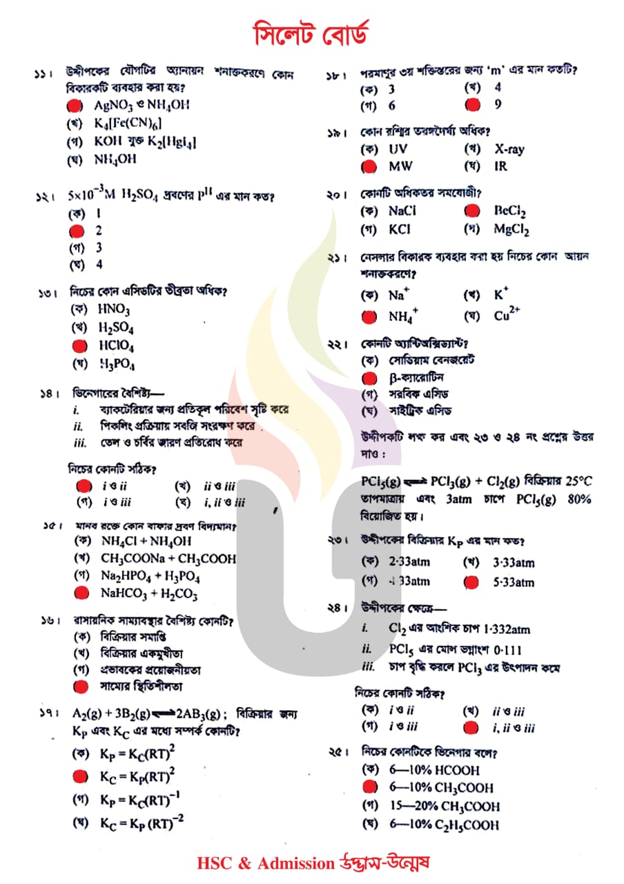 সিলেট বোর্ড এইচএসসি রসায়ন ১ম পত্র MCQ প্রশ্ন সমাধান ২০২৩