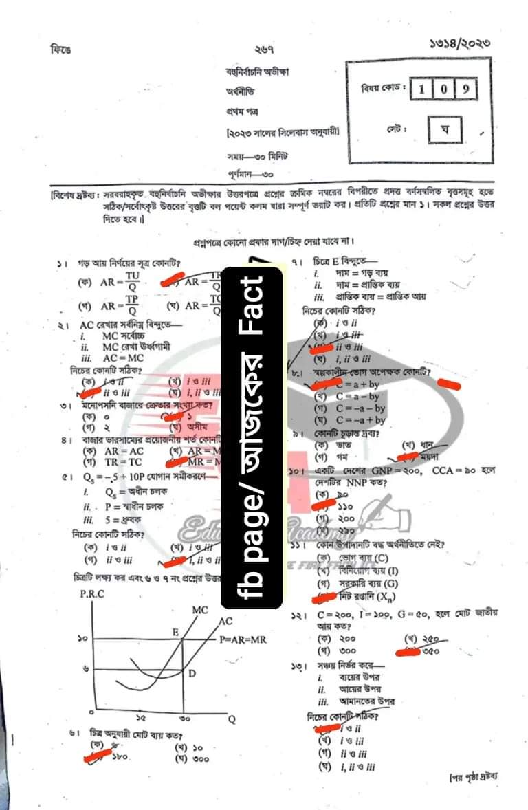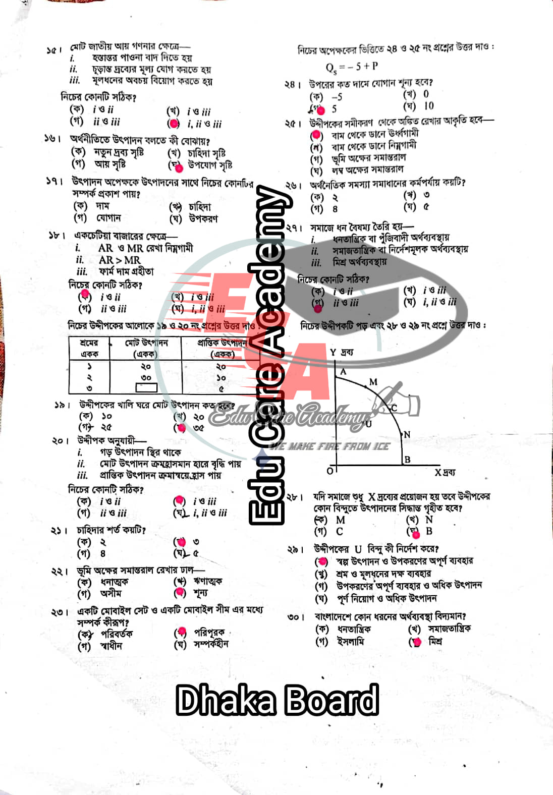 ঢাকা বোর্ড এইচএসসি অর্থনীতি ১ম পত্র MCQ প্রশ্ন সমাধান ২০২৩