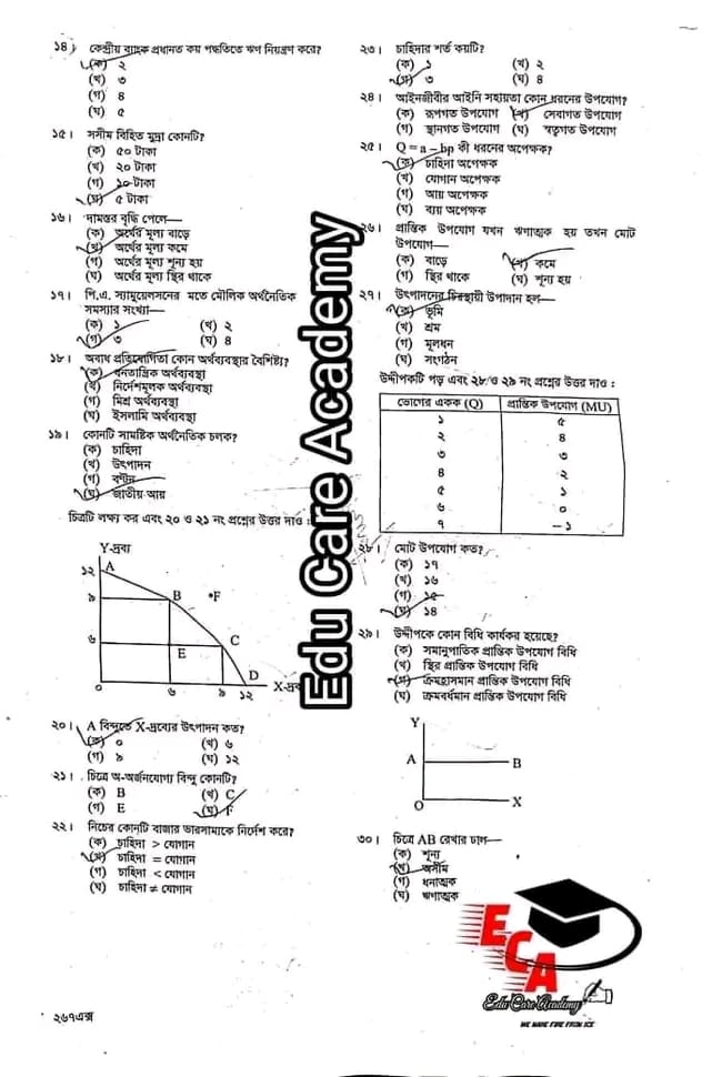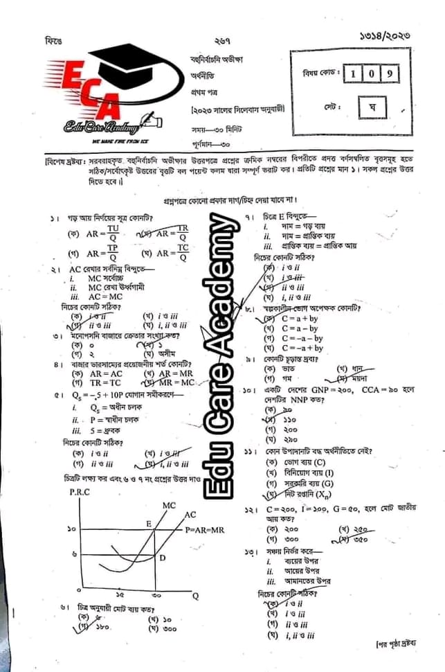 এইচএসসি অর্থনীতি ১ম পত্র MCQ প্রশ্ন সমাধান ২০২৩