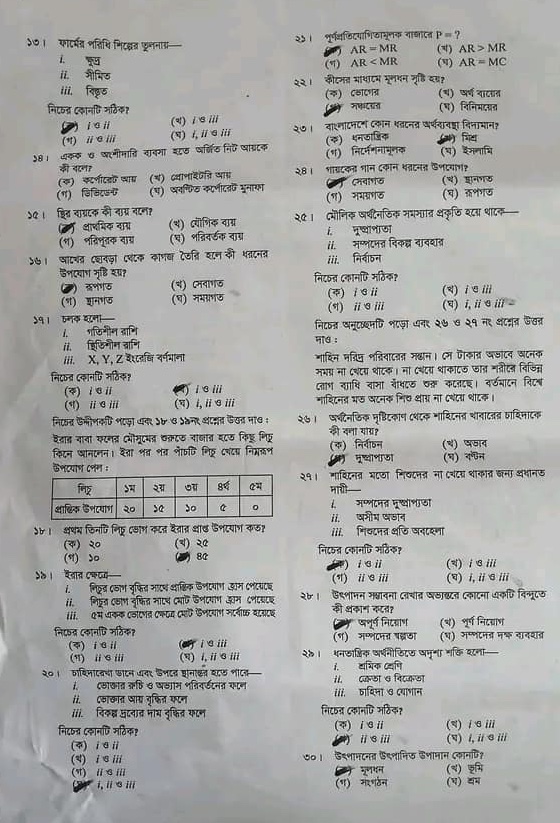 এইচএসসি প্রশ্ন সমাধান 2023: অর্থনীতি ১ম পত্র