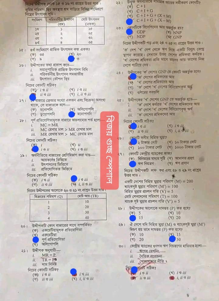 | বিষয়ের নাম | অর্থনীতি ১ম পত্র |