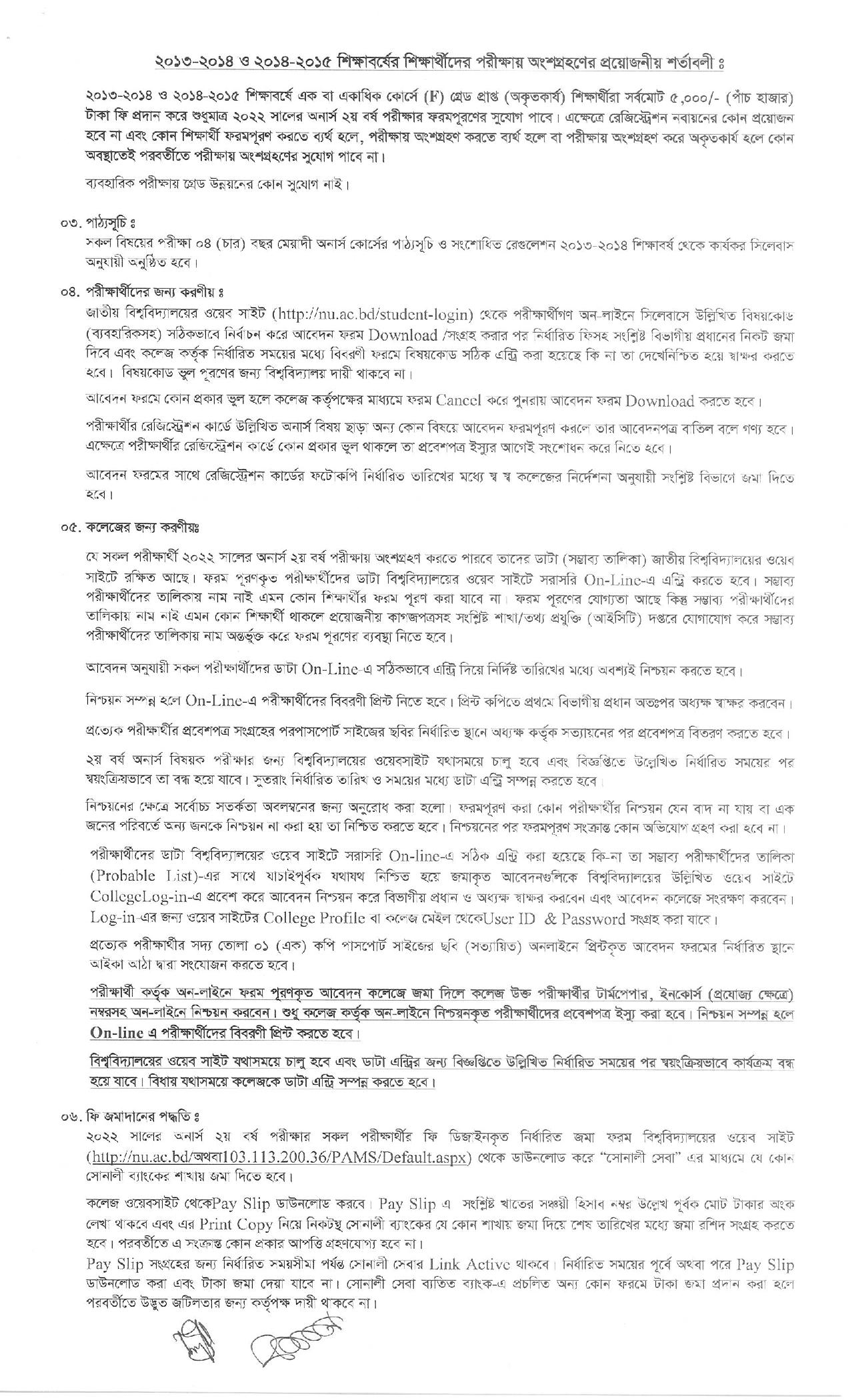 অনার্স ২য় বর্ষের অনলাইনে আবেদন ফরম পূরণের লিঙ্কঃ www.nubd.info/honours