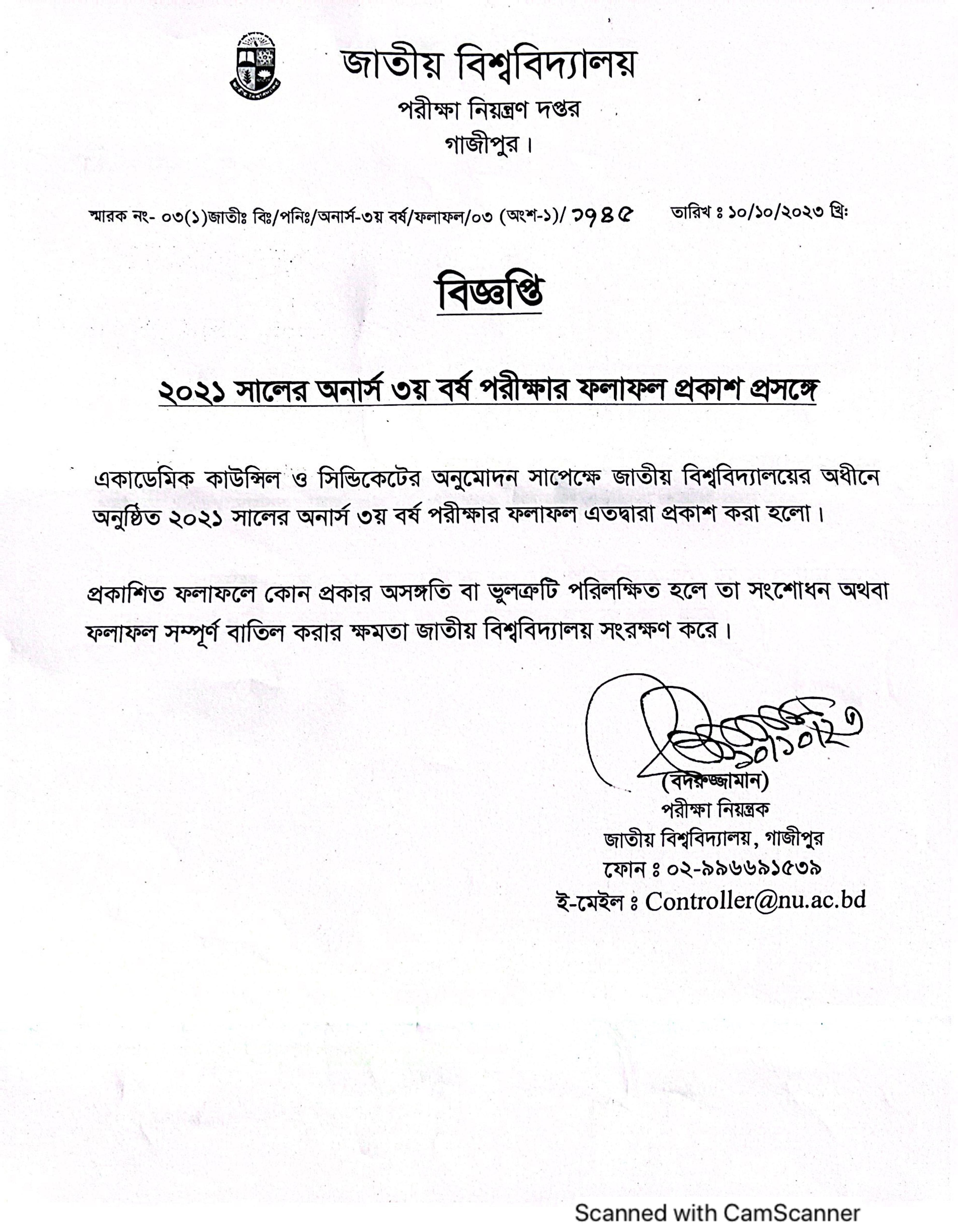 অনার্স ৩য় বর্ষের রেজাল্ট ২০২৩
