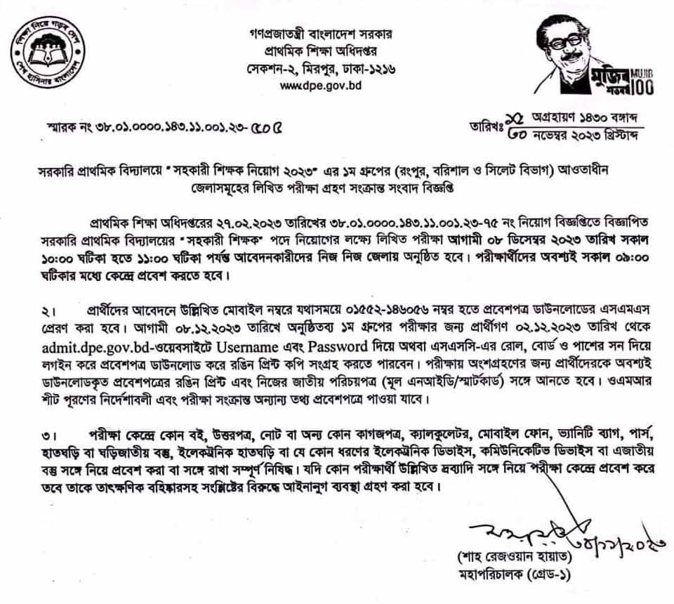 | এডমিট কার্ড ডাউনলোড শুরু | ০২ ডিসেম্বর ২০২৩ তারিখ |