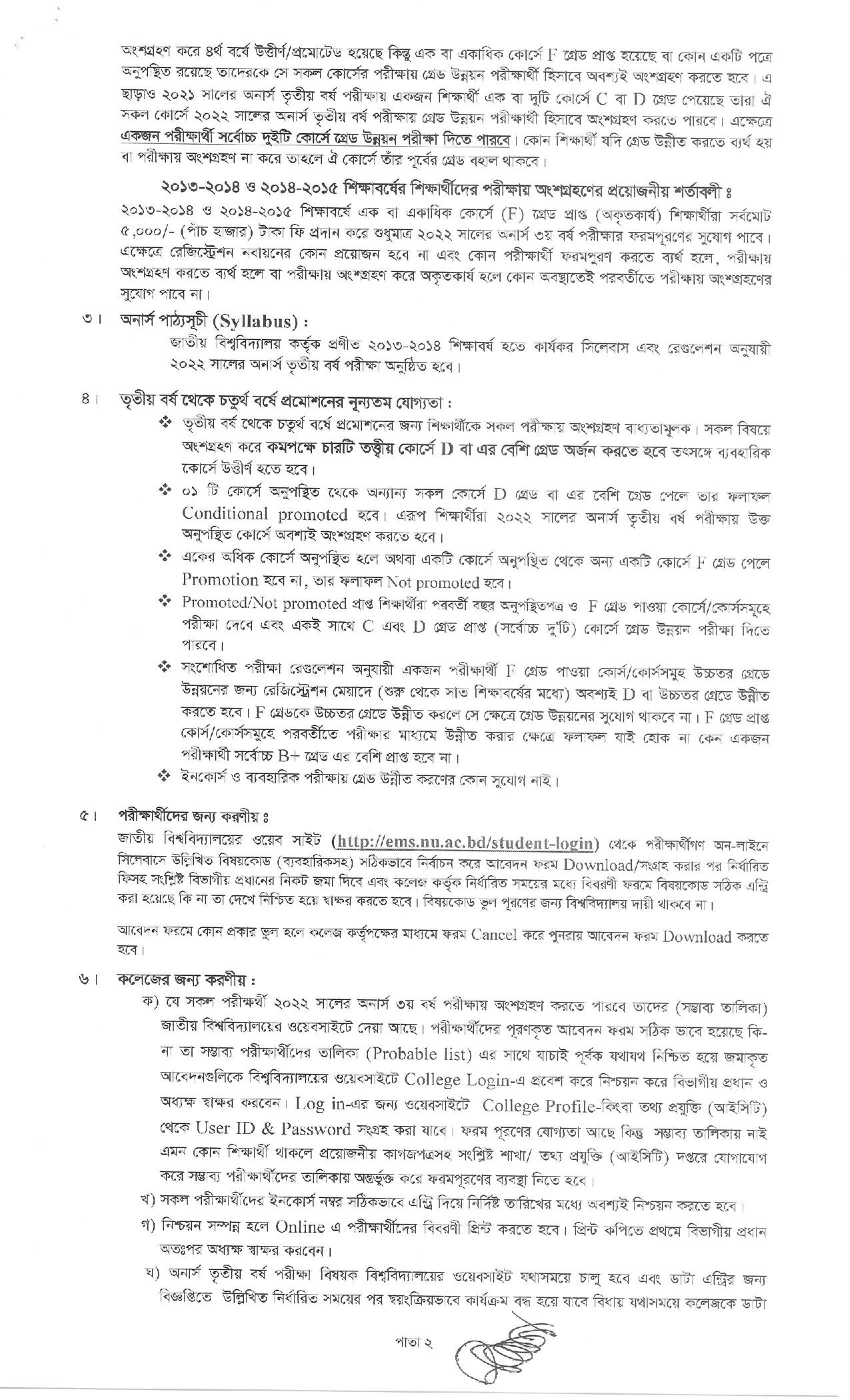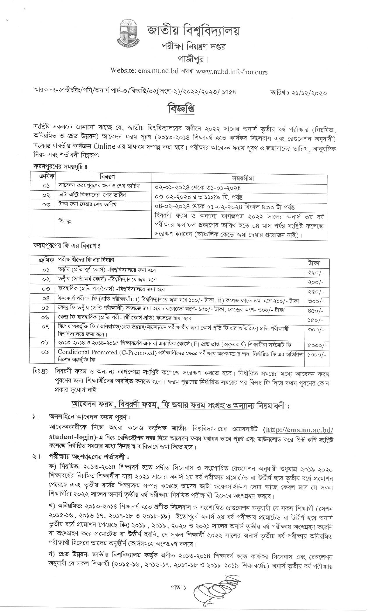 জাতীয় বিশ্ববিদ্যালয়ের ২০২২ সালের অনার্স ৩য় বর্ষ পরীক্ষার ফরম পূরণের বিজ্ঞপ্তি ২০২৩