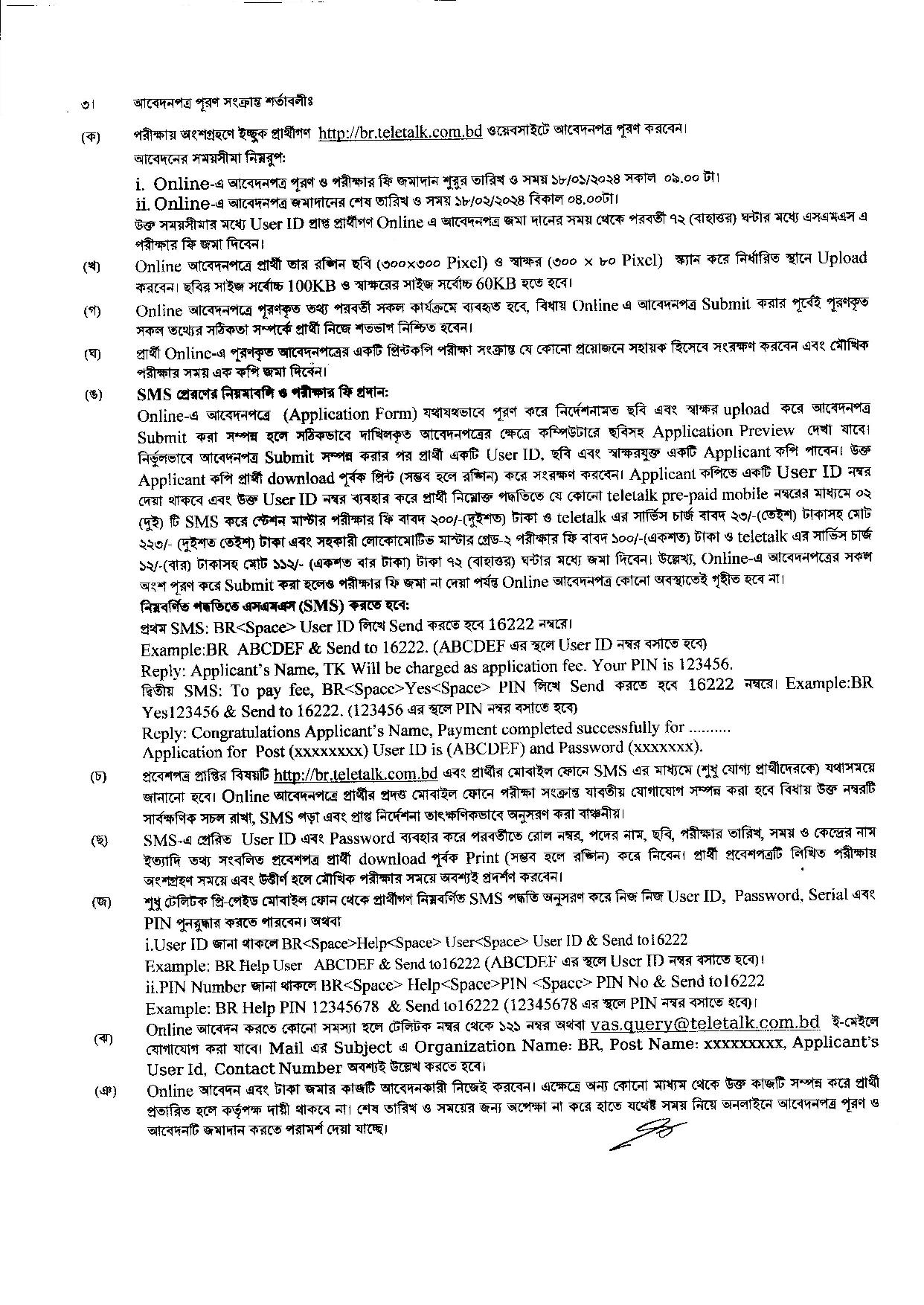 | আবেদন করার ওয়েবসাইট | https://br.teletalk.com.bd |