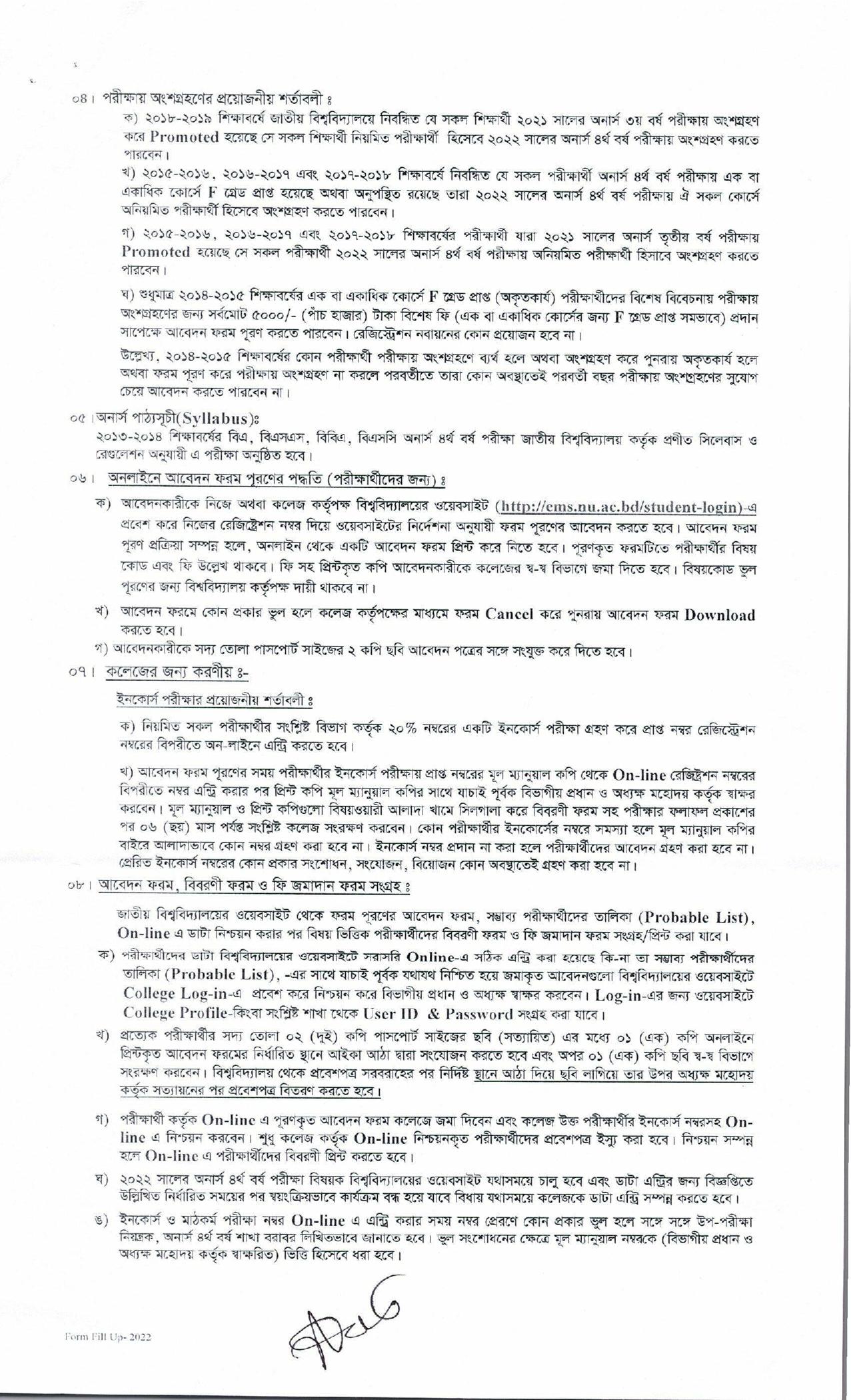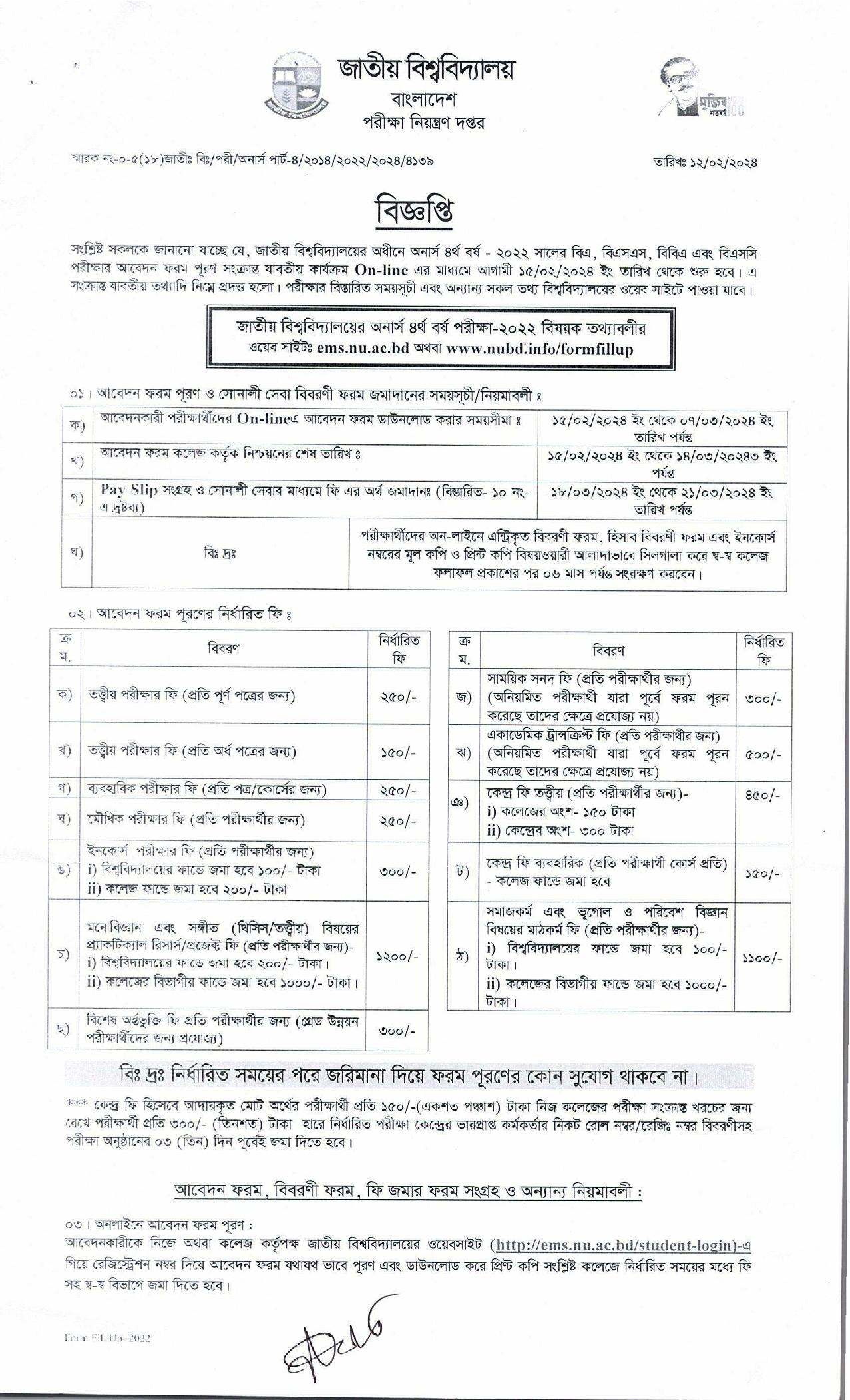 অনার্স ৪র্থ বর্ষ ফরম পূরণ বিজ্ঞপ্তি ২০২৪ pdf ডাউনলোড
