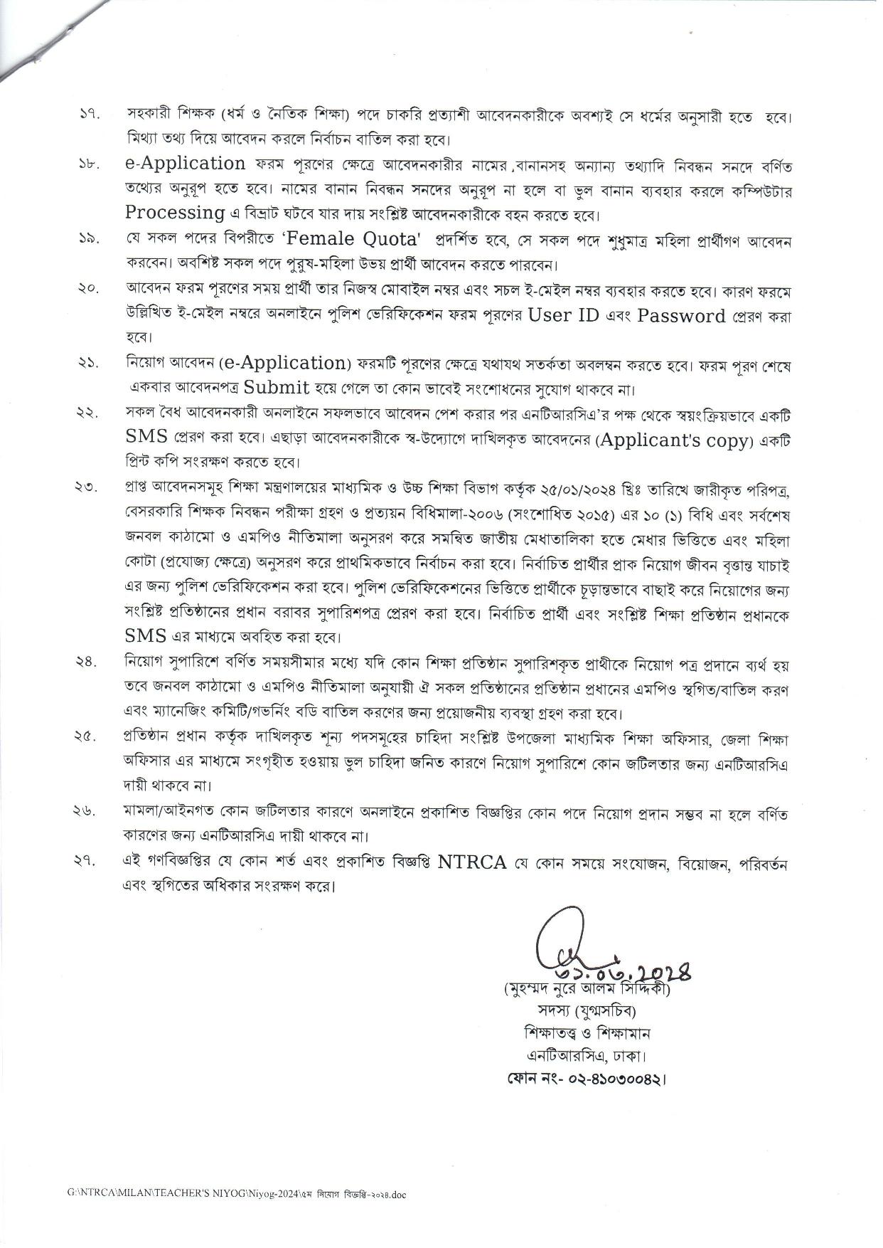 এনটিআরসিএ শিক্ষক নিয়োগ গণবিজ্ঞপ্তি ২০২৪ আবেদনের যোগ্যতা ২০২৪