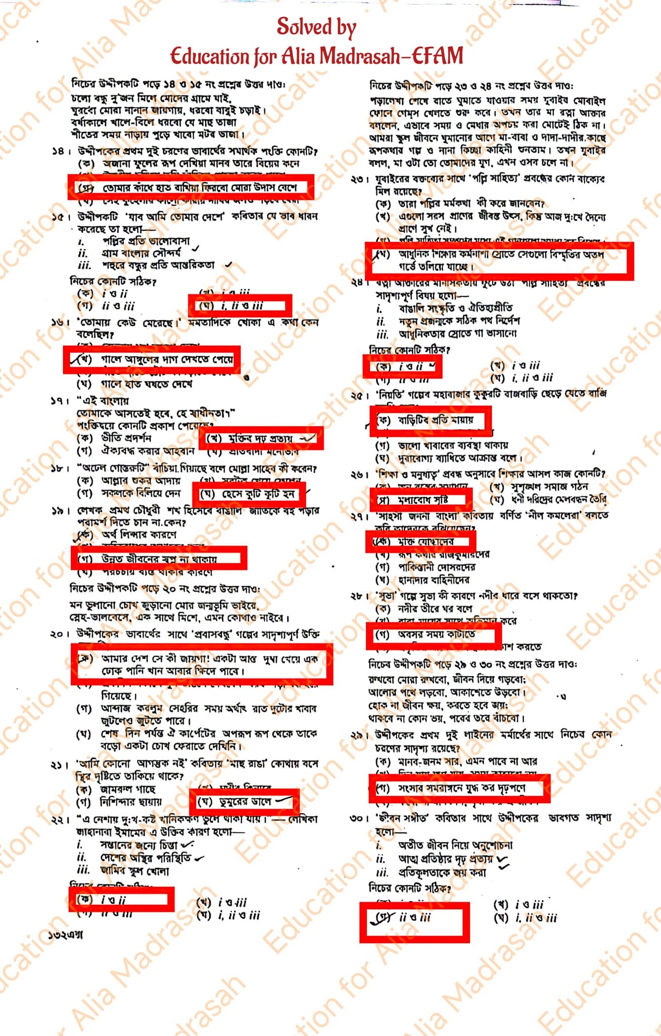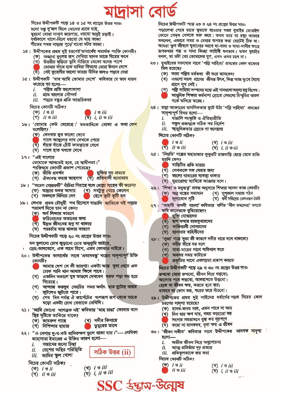 দাখিল প্রশ্ন সমাধান 2025: বাংলা ১ম পত্র