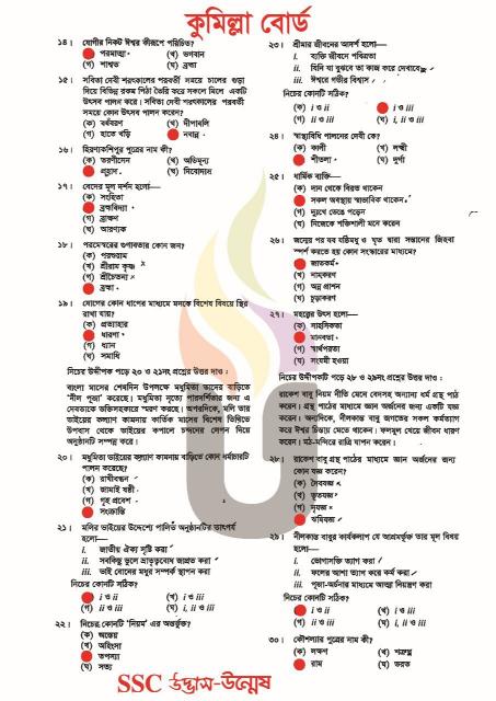 কুমিল্লা বোর্ড এসএসসি হিন্দু ধর্ম ও নৈতিক শিক্ষা প্রশ্ন সমাধান ২০২৫