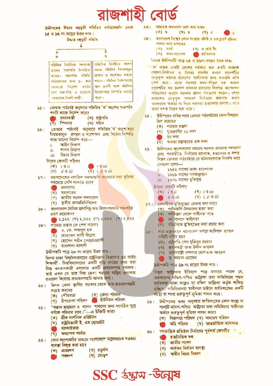 | Rajshahi Board SSC Civics MCQ Question Answer 2025 pdf Download | Click Here to Download |
