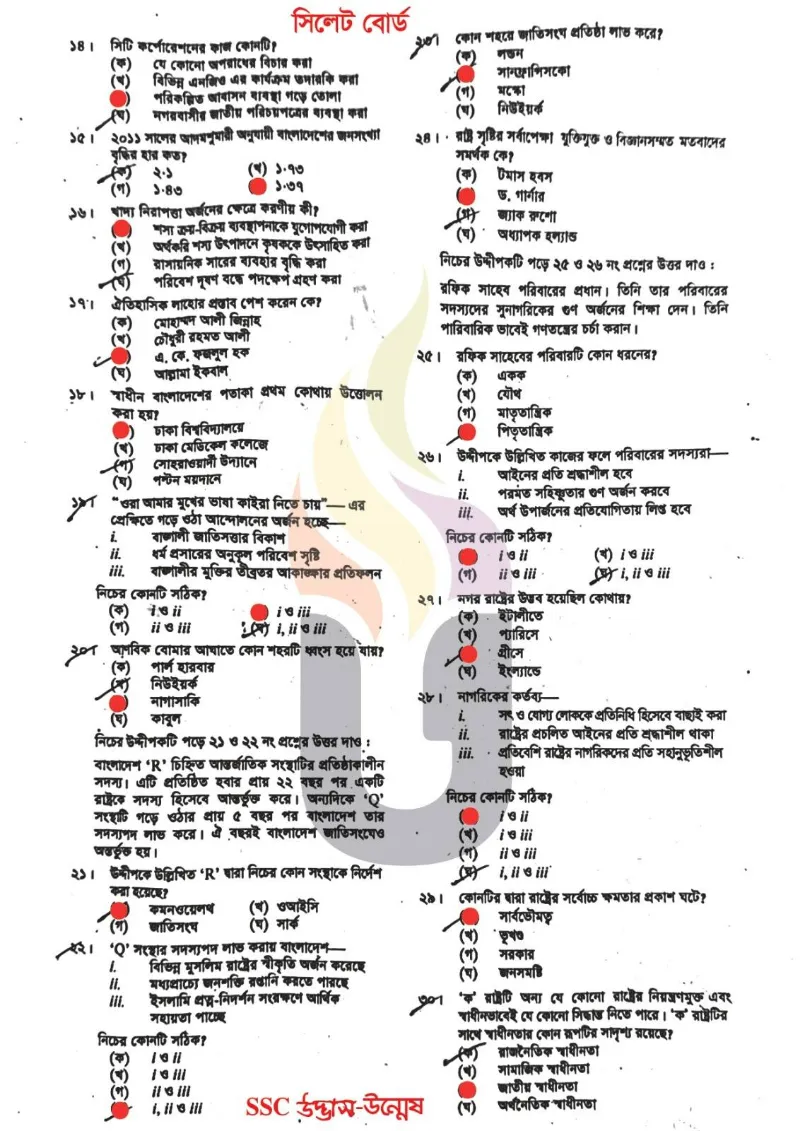 | Sylhet Board SSC Civics MCQ Question Answer 2025 pdf Download | Click Here to Download |