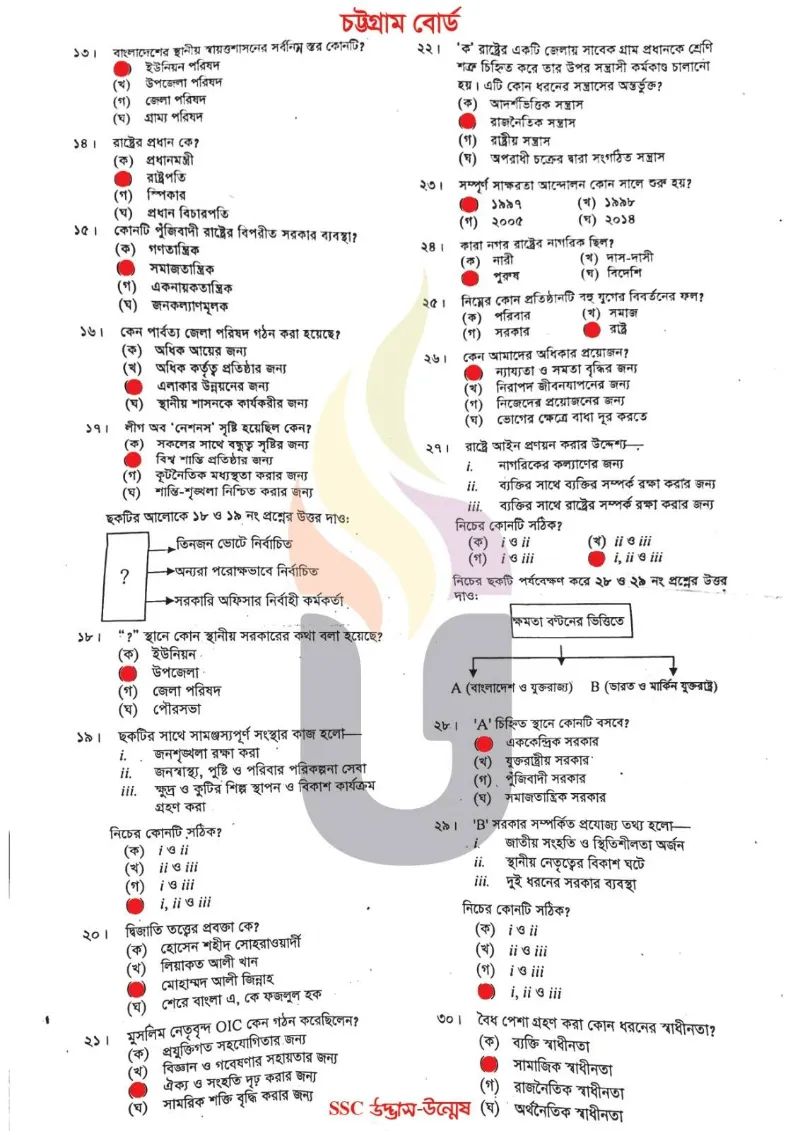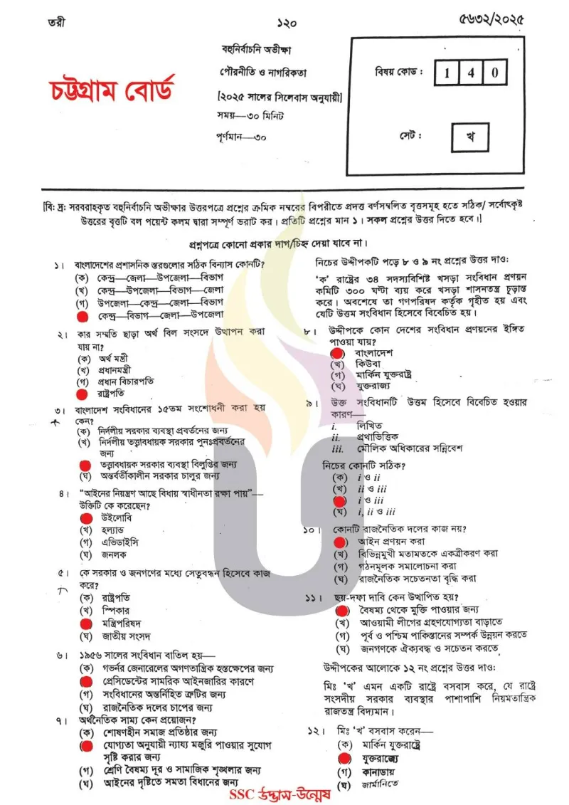 Civics MCQ Question With Answers 2025 Chittagong Board