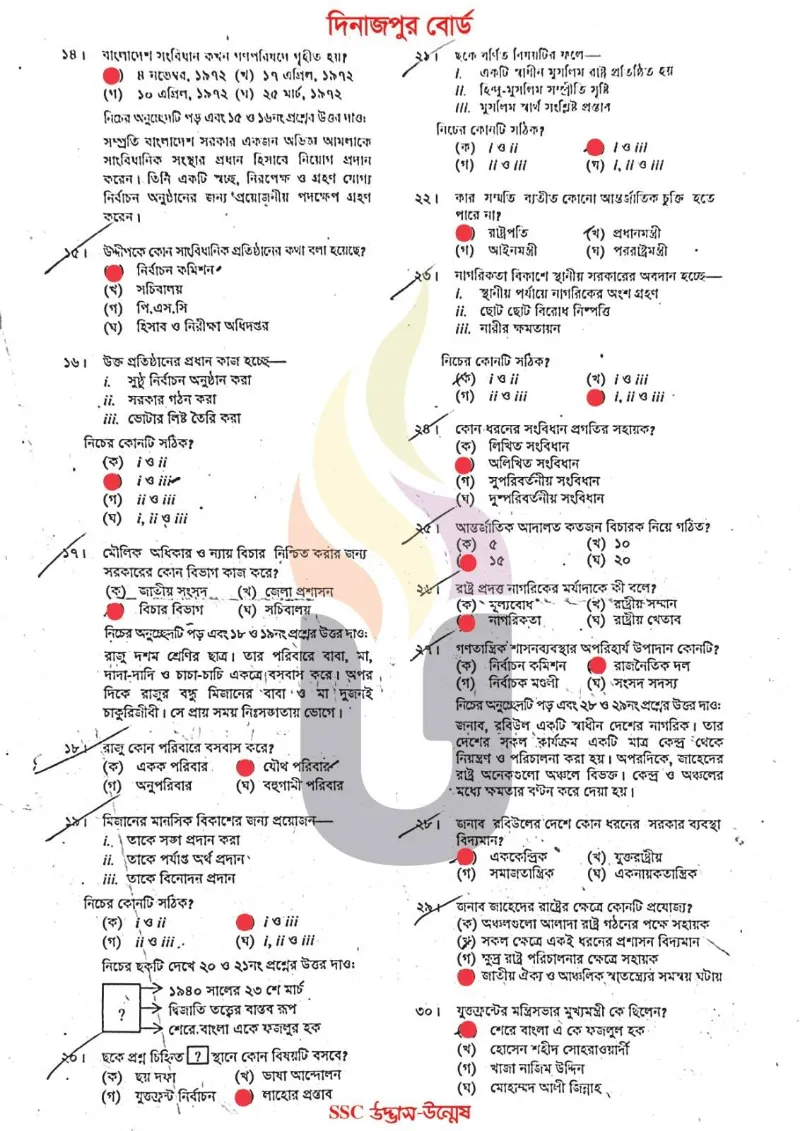 | Dinajpur Board SSC Civics MCQ Question Answer 2025 pdf Download | Click Here to Download |