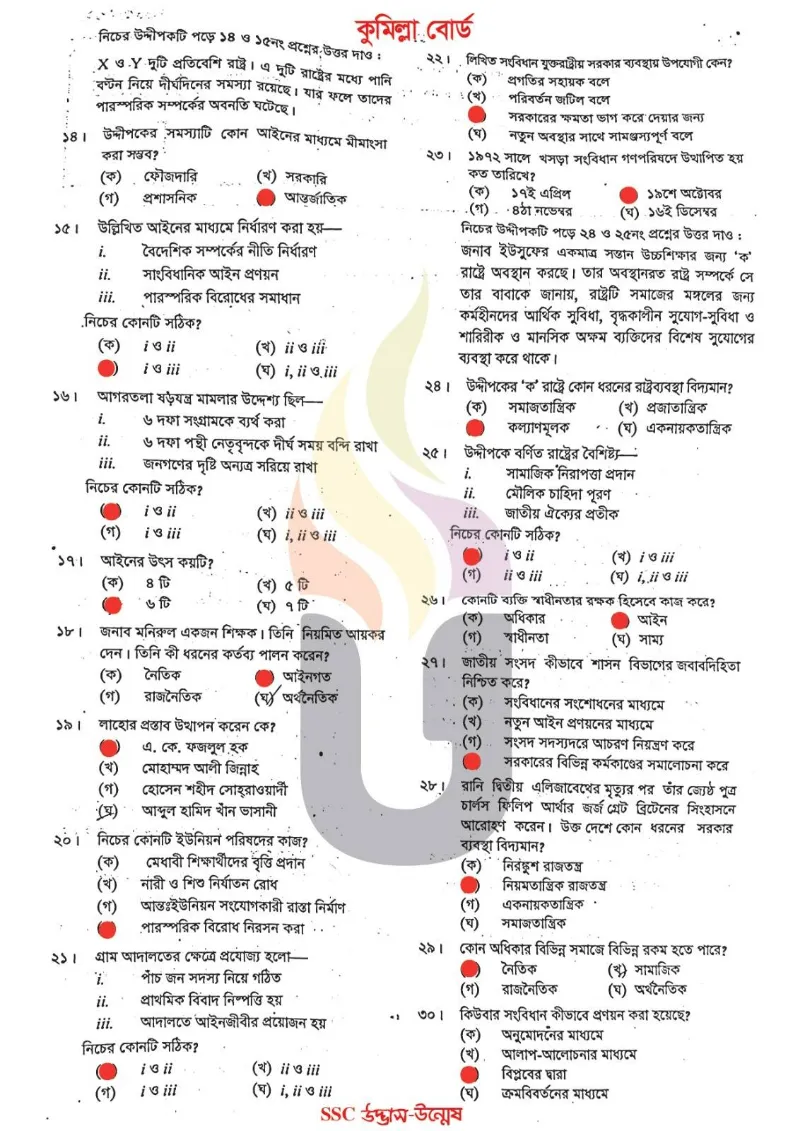 Brahmanbaria, Chandpur, Comilla, Feni, Lakshmipur, Noakhali district under Cumilla Education Board. So, If you are from these 6 districts then your Cumilla Board Civics Question Answer of SSC Exam 2025 will be found here.