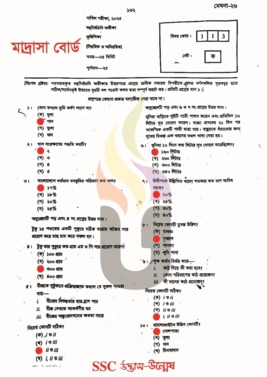 Dakhil 2025 Agriculture Studies MCQ Question solution pdf Download
