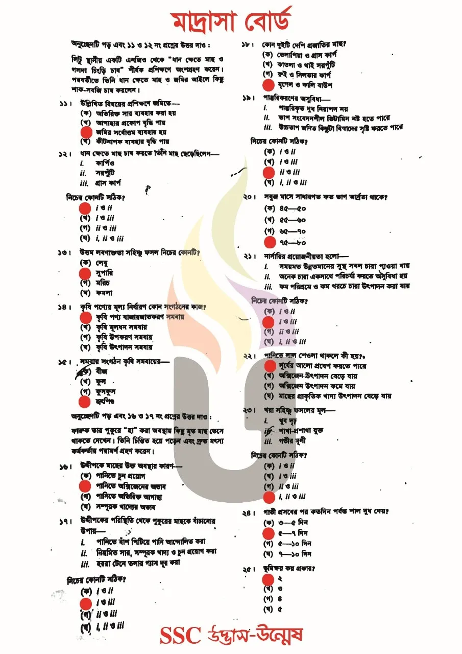 Dakhil Agriculture Studies Question Answer 2025 MCQ Part