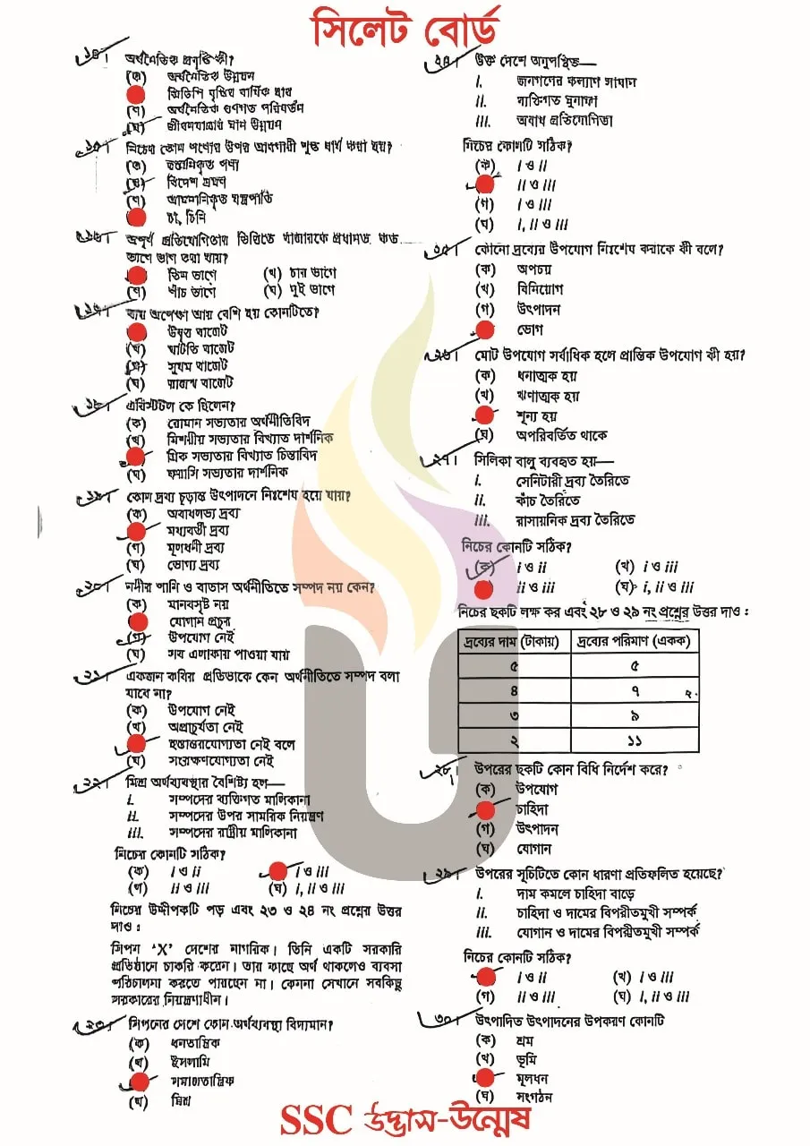 Economics MCQ Exam Question Solution Sylhet Board 2025