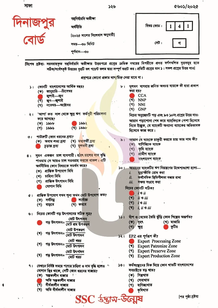 Economics MCQ Question solution 2025 Dinajpur Board