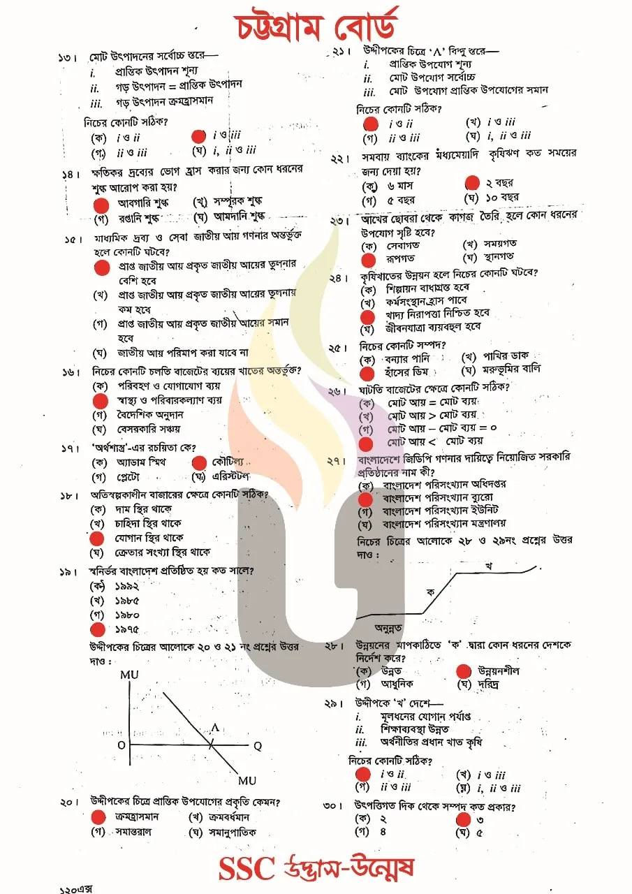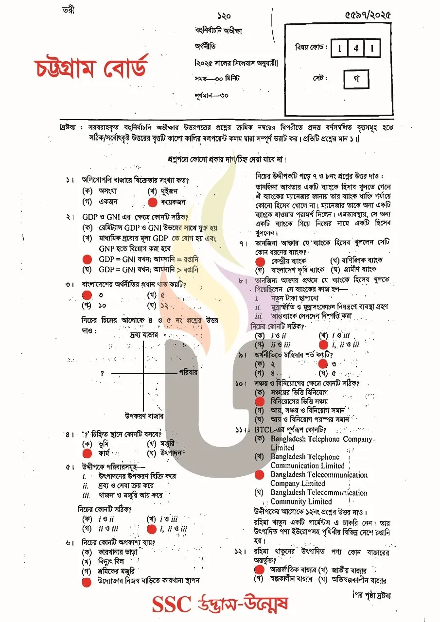 Economics MCQ Question With Answers 2025 Chittagong Board