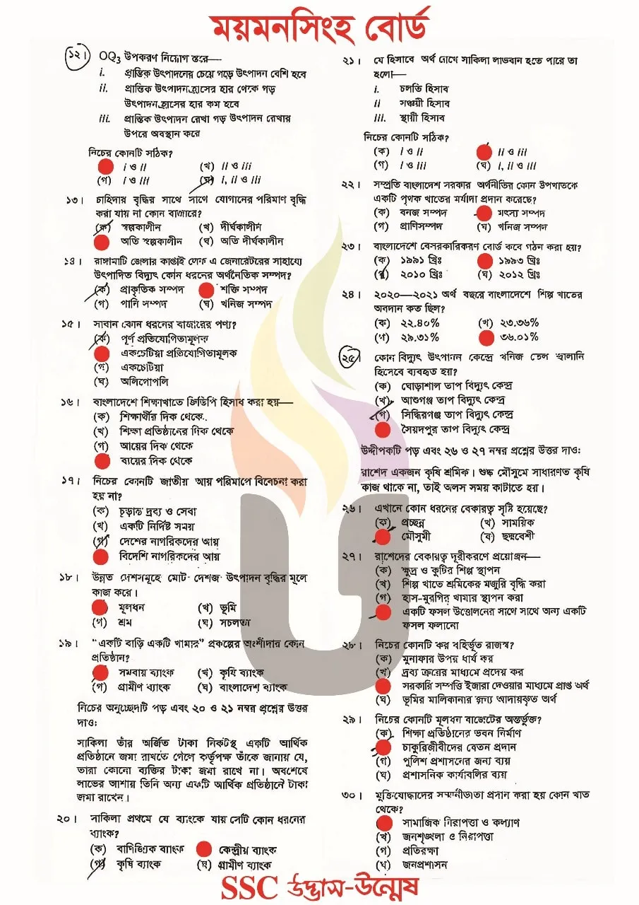 Economics MCQ Exam 2025 Question Solution Mymensingh Board