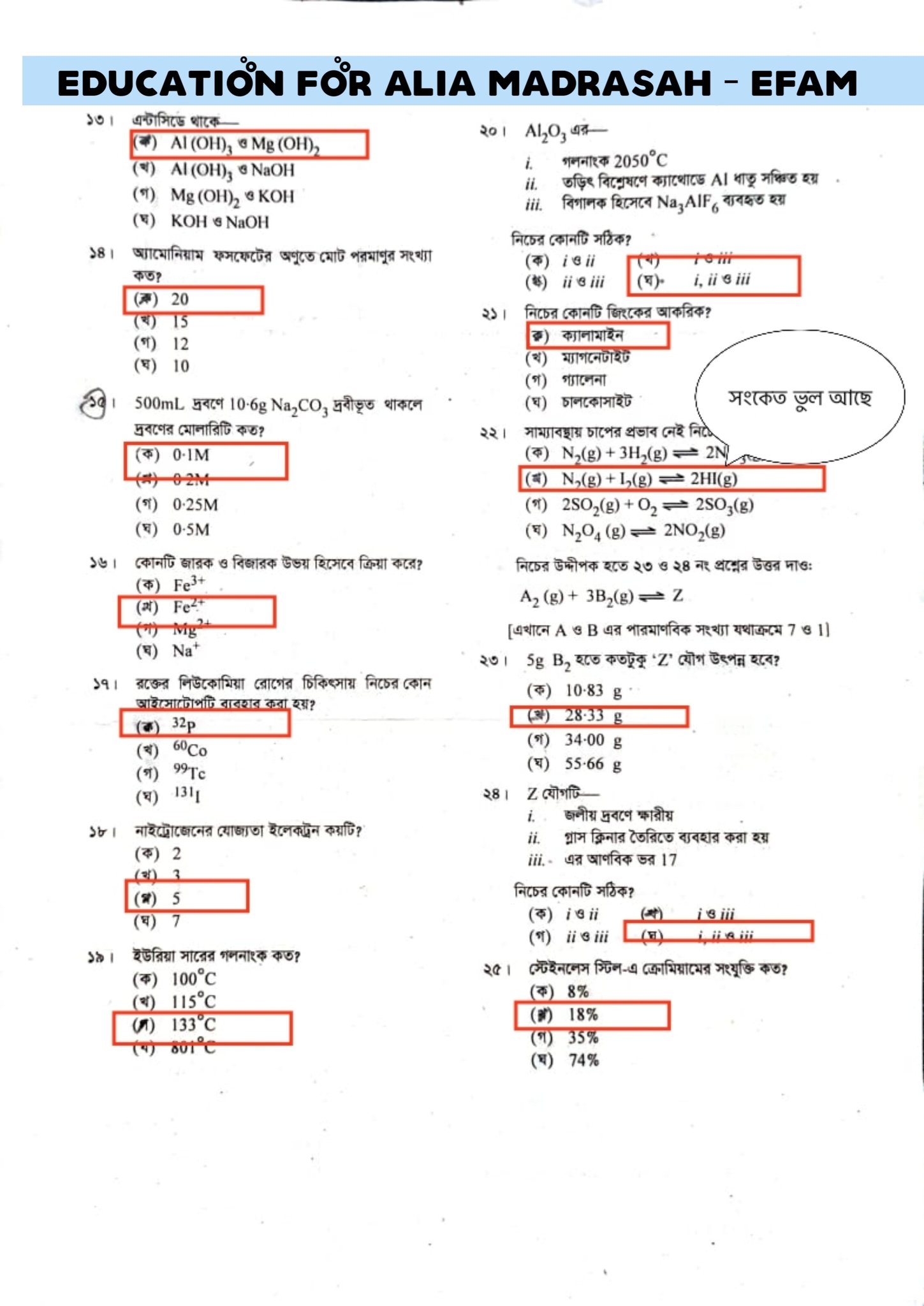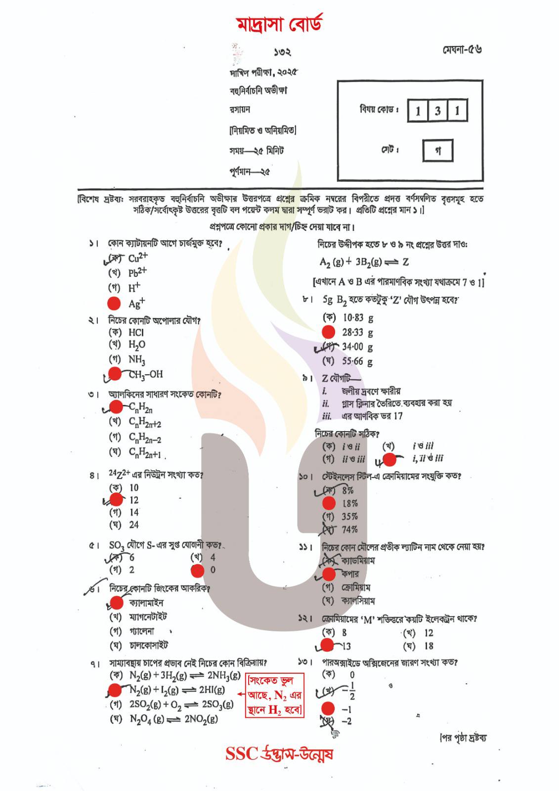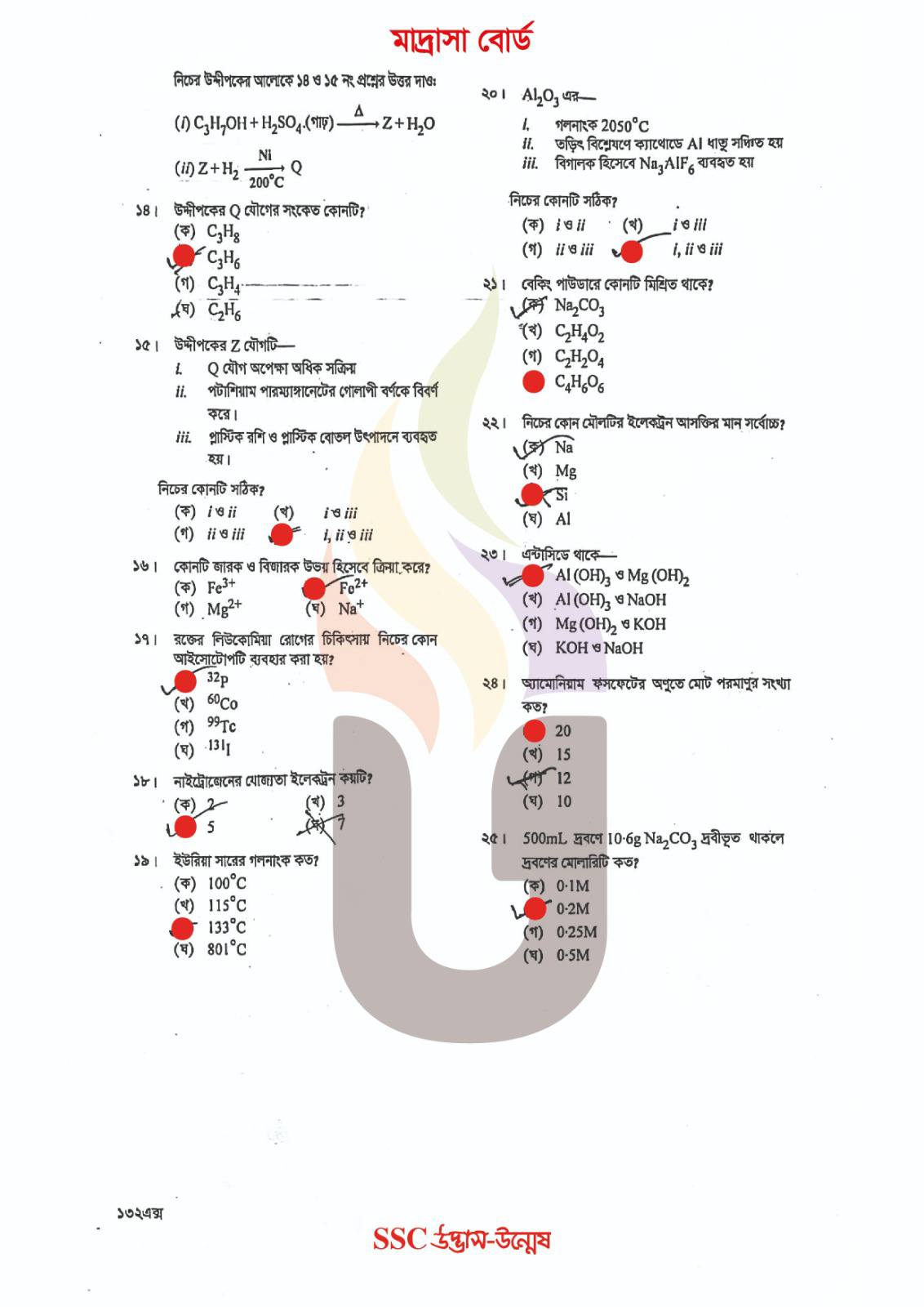 দাখিল রসায়ন বহুনির্বাচনি প্রশ্ন সমাধান ২০২৫ মাদ্রাসা বোর্ড
