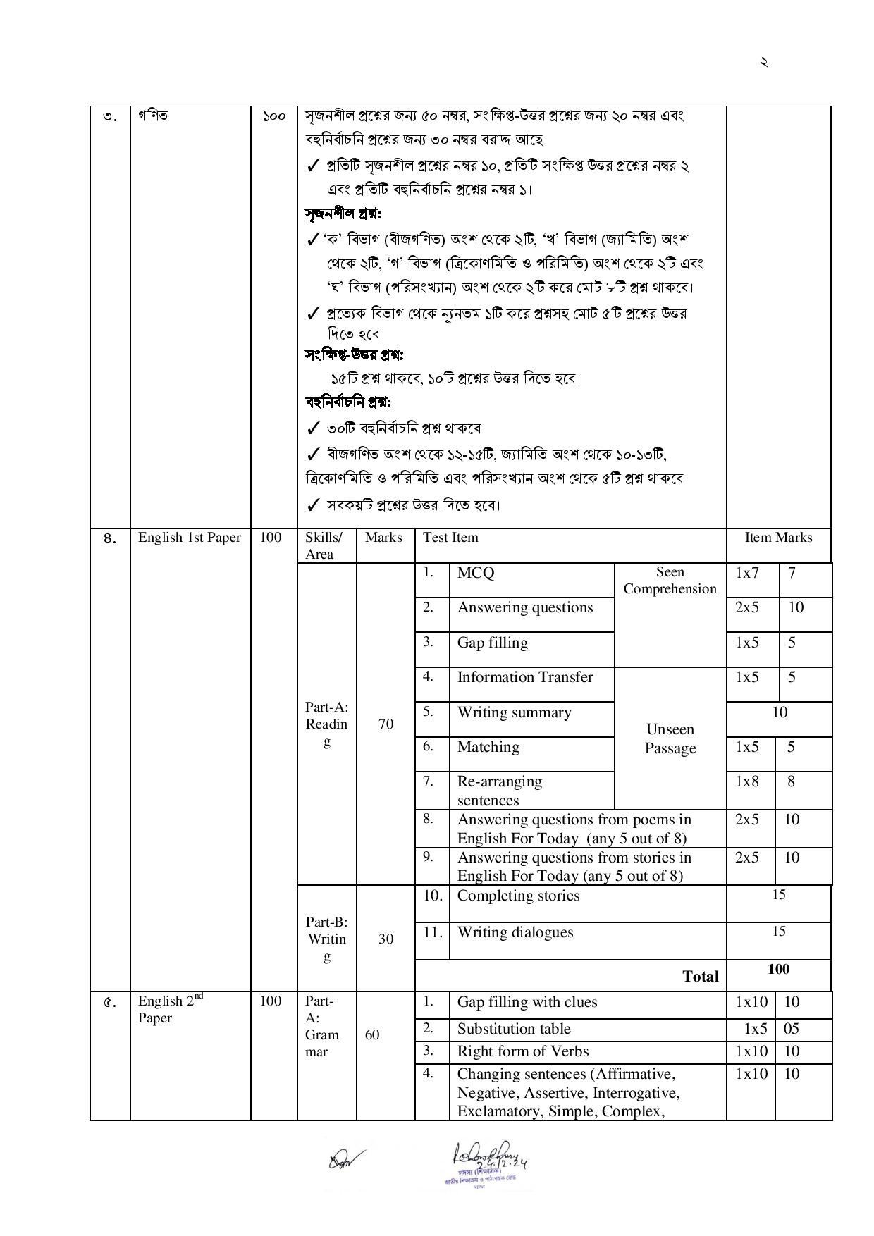 প্রতিটি বিষয়ের প্রশ্নে সৃজনশীল, ব্যাখ্যামূলক, সংক্ষিপ্ত ও এমসিকিউ অংশে কত নম্বর থাকবে—তা বিস্তারিতভাবে এনসিটিবির প্রকাশিত তালিকায় দেওয়া আছে।