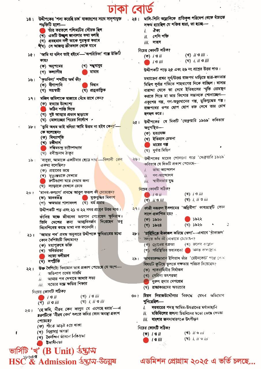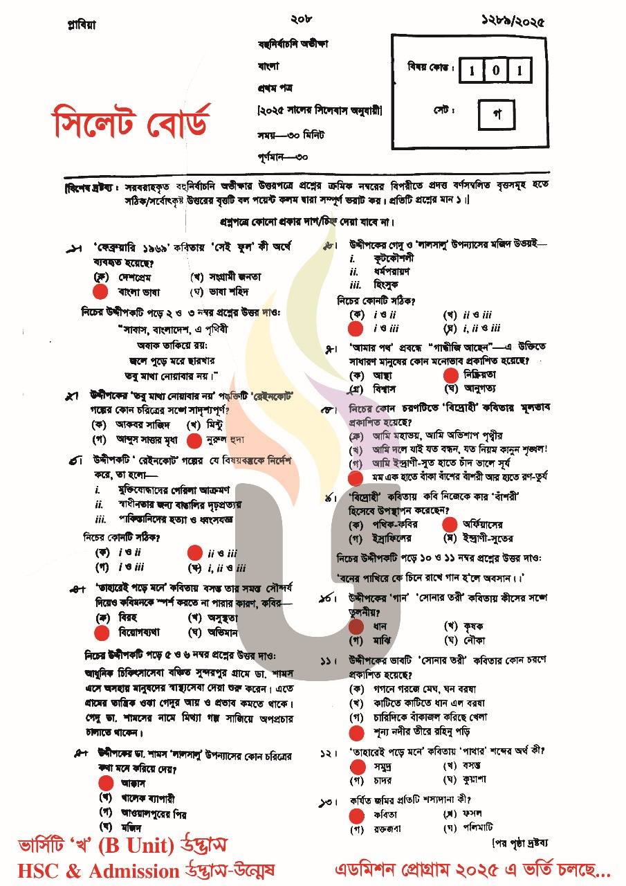 এইচএসসি ২০২৫ বাংলা ১ম পত্র mcq উত্তরমালা