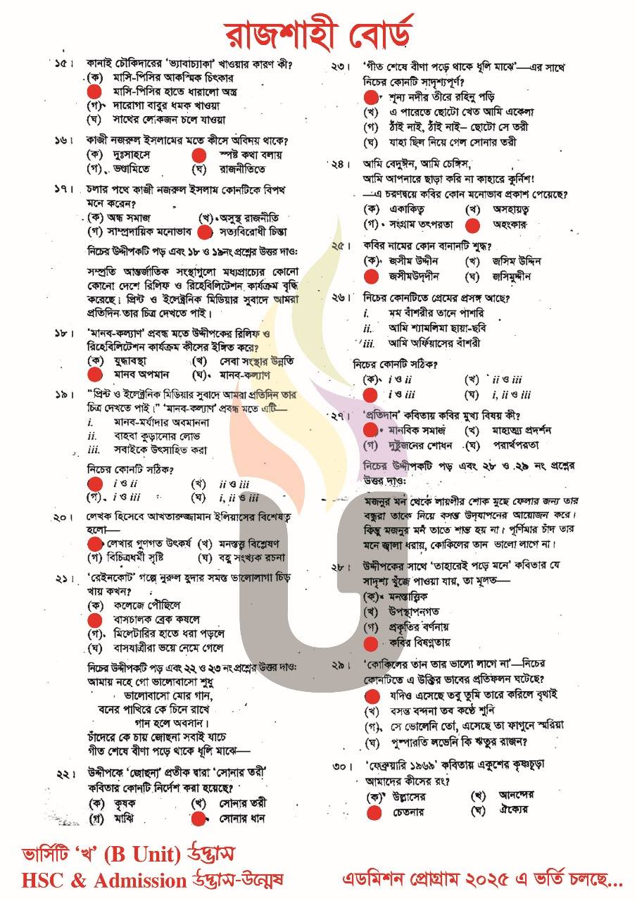 রাজশাহী বোর্ড এইচএসসি বাংলা ১ম পত্র প্রশ্ন সমাধান ২০২৫