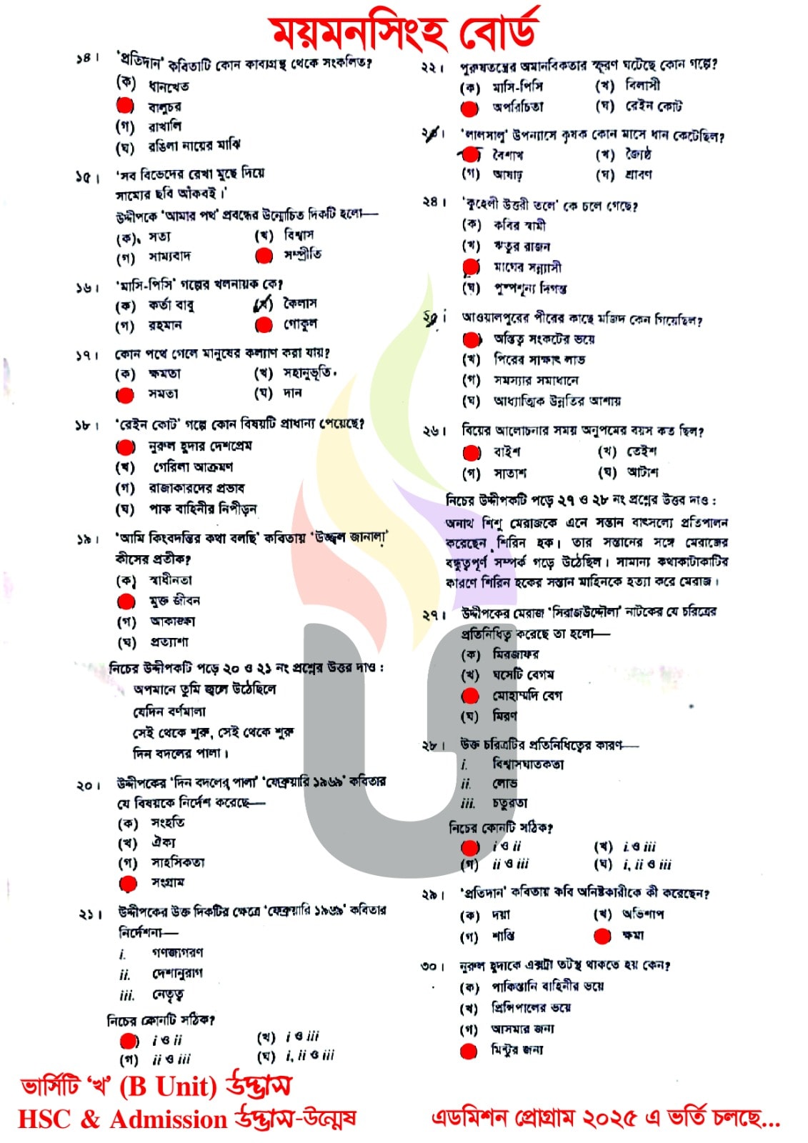 ময়মনসিংহ বোর্ড এইচএসসি বাংলা ১ম পত্র প্রশ্ন সমাধান ২০২৫