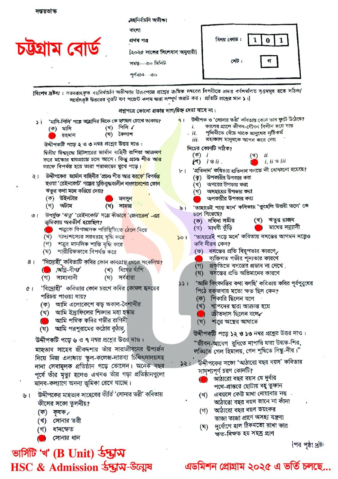 | সেট কোড | ক, খ, গ ও ঘ |