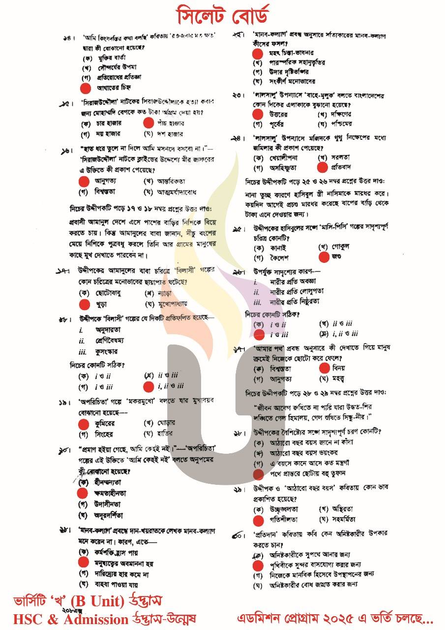 সিলেট বোর্ড এইচএসসি বাংলা ১ম পত্র প্রশ্ন সমাধান ২০২৫
