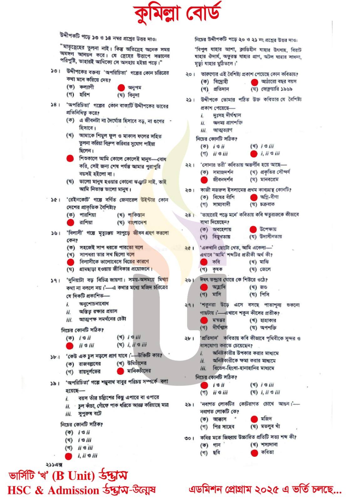 কুমিল্লা বোর্ড এইচএসসি বাংলা ১ম পত্র প্রশ্ন সমাধান ২০২৫