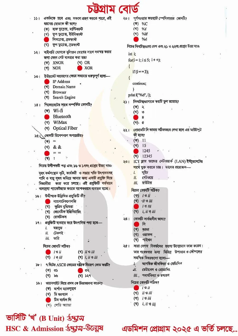 ICT MCQ Question With Answers 2025 Chittagong Board HSC 2025