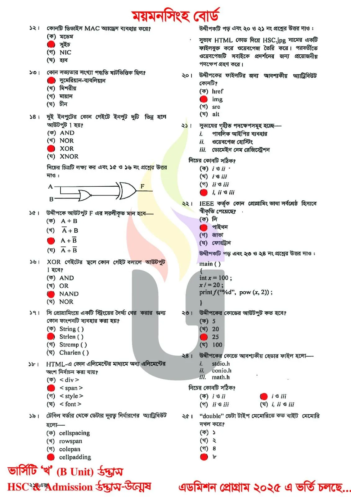 ICT MCQ Exam Question Solution Mymensingh Board HSC 2025
