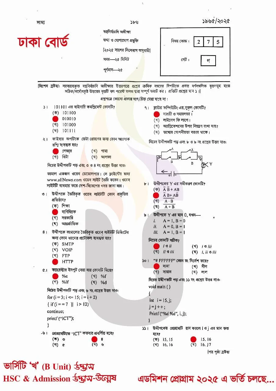 HSC 2025 ICT Exam was held on 07 July, 2025. The Education Board Of Bangladesh is trying to take the exam timely. However, I think you are a HSC candidate. So today you have completed your ICT Exam and are seeking for the Question Answer. We are here to do the task for you. HSC 2025 ICT MCQ Question 2025 All Board will be uploaded here. We will also answer other exam questions too. So, Please Come back here again to get other Exam’s Question Solutions.