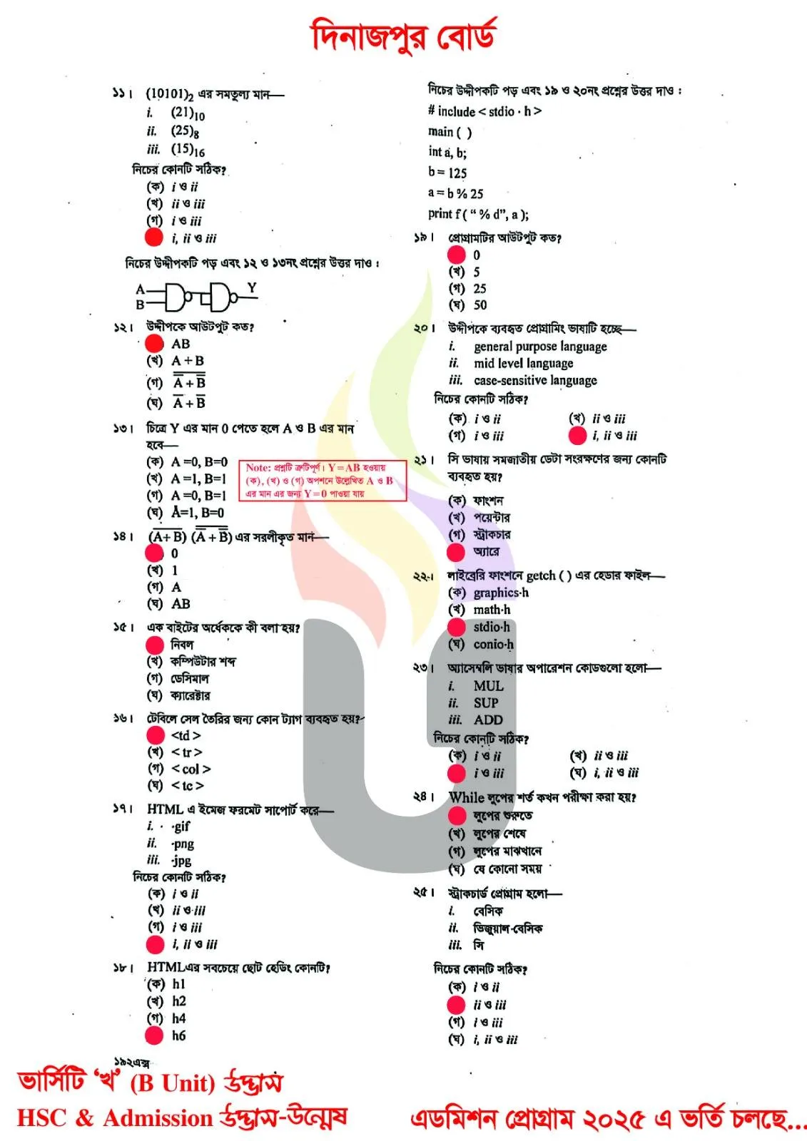 | Dinajpur Board HSC ICT MCQ Question Answer pdf 2025 Download | Click Here to Download |