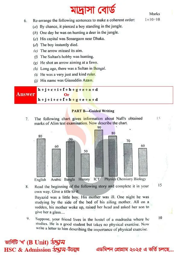 Alim English 1st Paper Question Answer 2025 Reading & Guided Writing Part