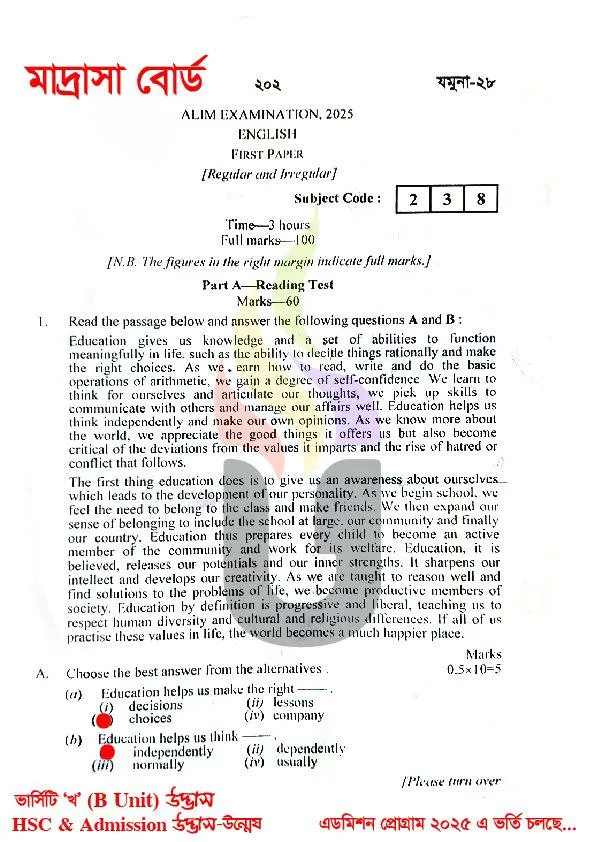 Alim 2025 English 1st Paper Exam was held on 07 July, 2025. The Education Board Of Bangladesh is trying to take the exam timely. However, I think you are a Alim candidate. So today you have completed your English 1st Paper Exam and are seeking for the Question Answer. We are here to do the task for you. We will also answer other exam questions too. So, Please Come back here again to get other Exam’s Question Solutions.