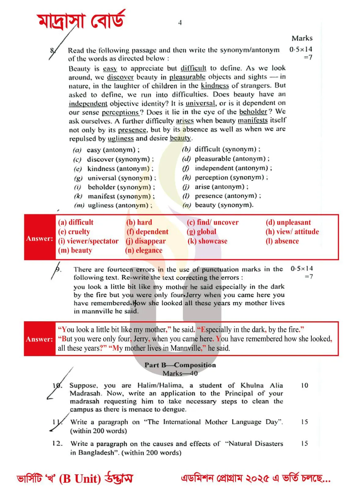 We always try to provide 100% Correct answers but sometimes some of our answers can be wrong. So, If you find any wrong answer then feel free to notify us we will update the correct answer of Alim English 2nd Paper Question Answer 2025. Please Visit us again to check Your Alim Next Exam’s Question & answer 2025.