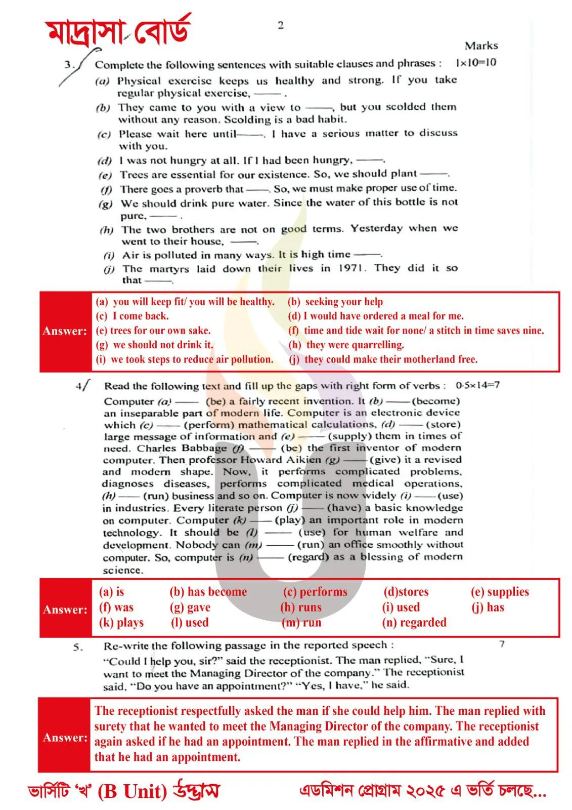 You Know that the English 2nd Paper Exam is divided into two parts. The first one is Grammar and the second one is Composition. We have already Solved Alim English 1st paper Question 2025 before and this is the time to solve your English 2nd Paper Question 2025. English 2nd Paper both the Grammar & Composition Part Answer 2025 will be also updated here by our expert team members. So, Bookmark this Post and also share with your Friends.