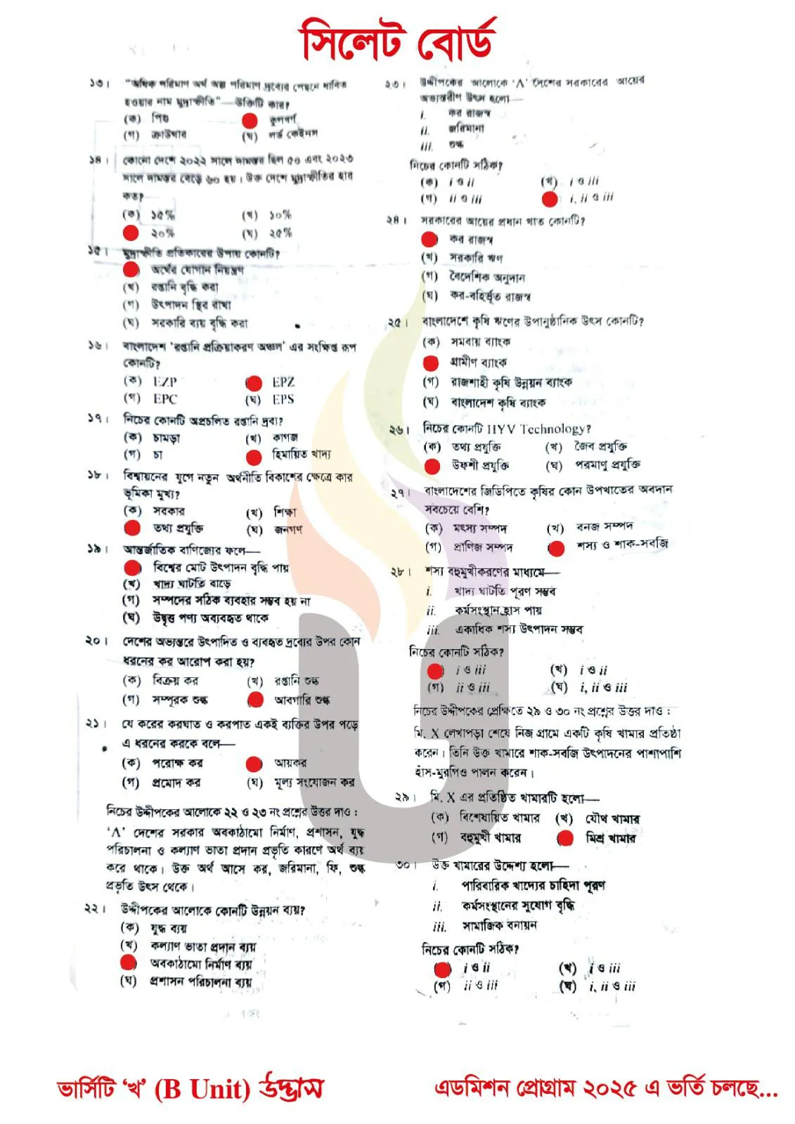 HSC 2025 Economics 2nd Paper MCQ Question and Answers
