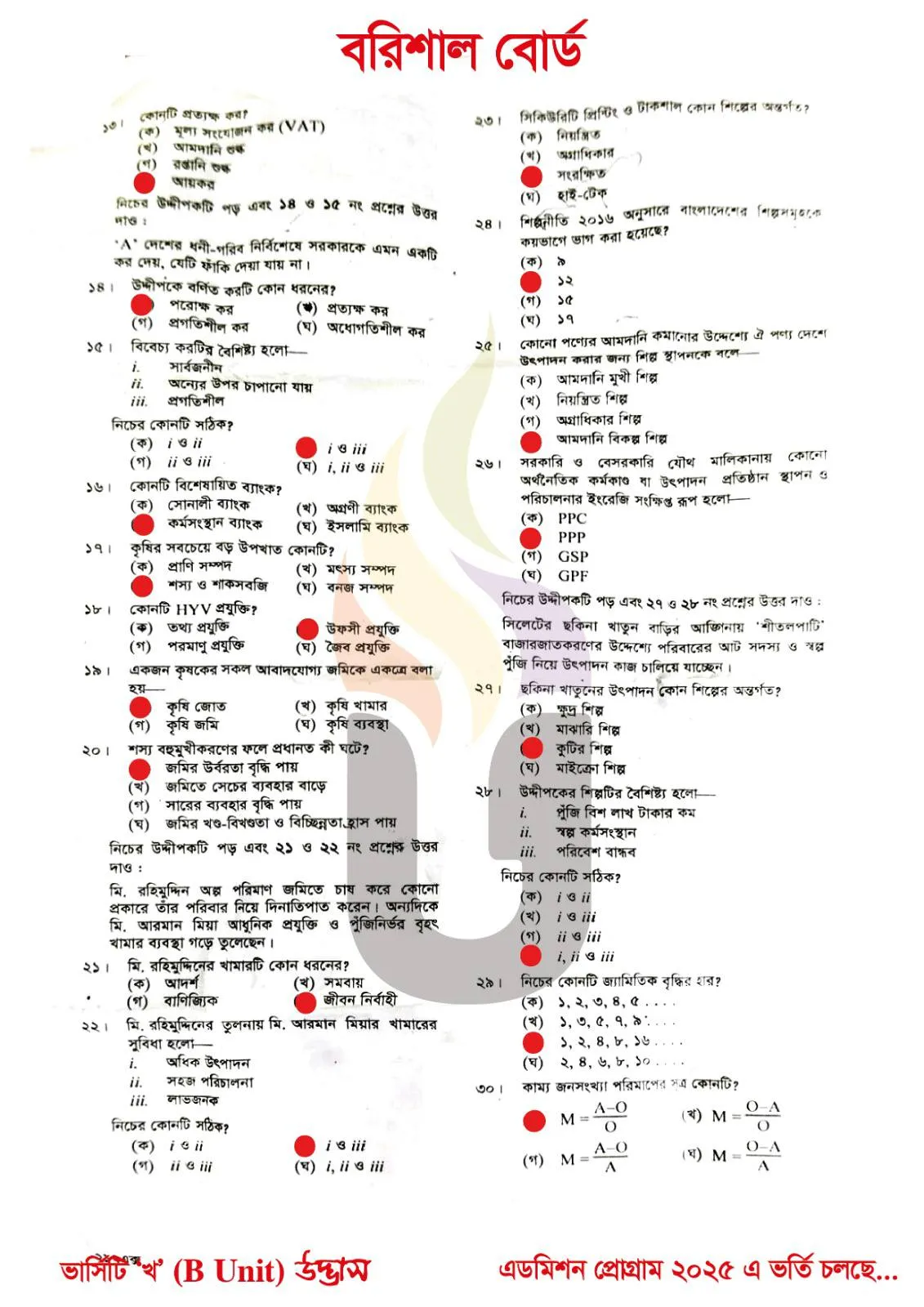 Economics 2nd Paper MCQ Question solution Barisal Board HSC 2025